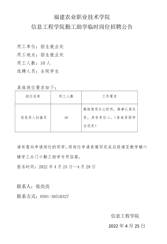 bat365在线登录网站注册赠送36信息工程学院勤工助学临时岗位招聘公告