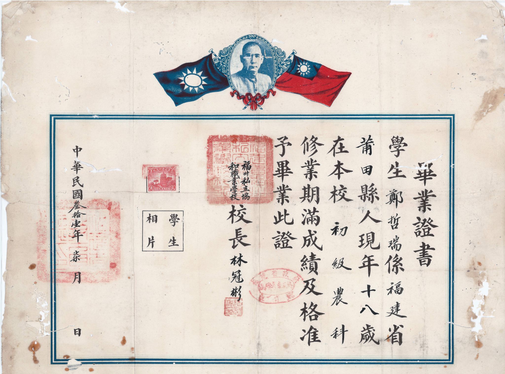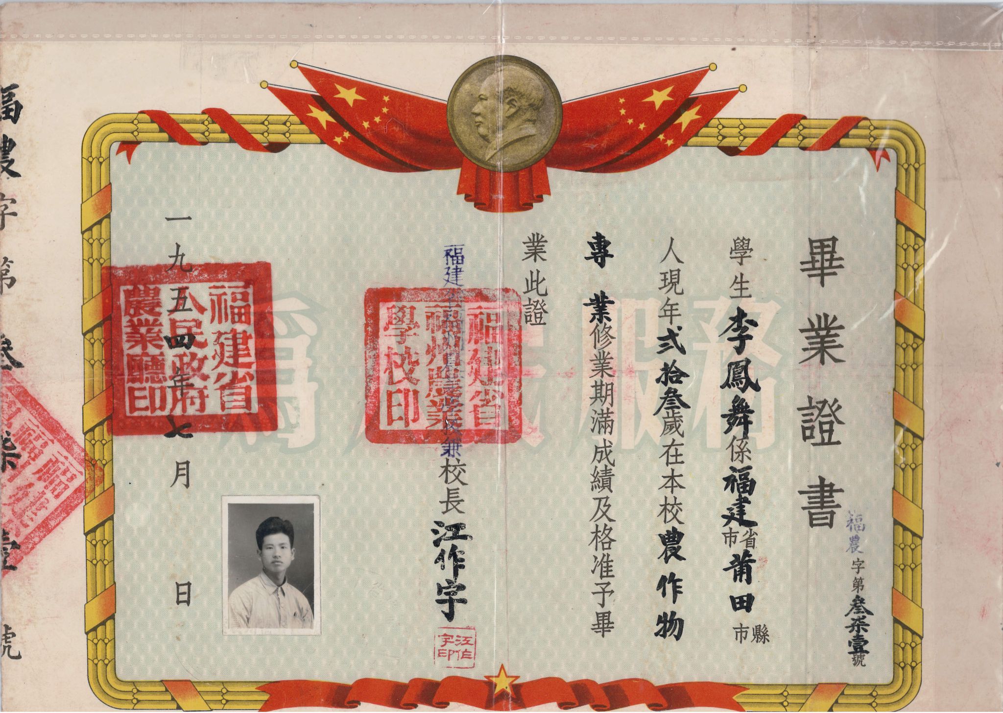 1954年福州农校毕业证书