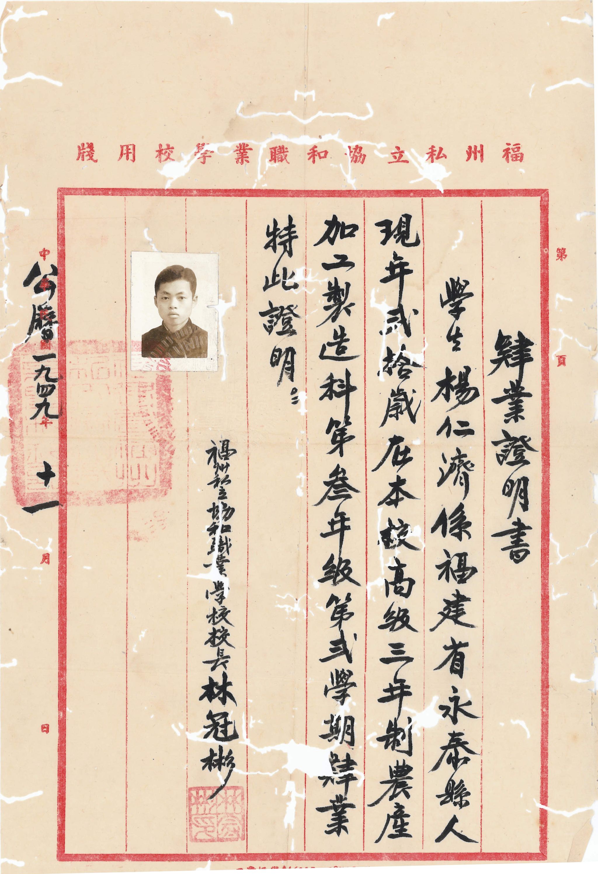 1949年协职肄业证明书