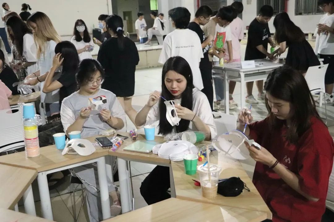校党委副书记王振亮应邀莅临游园会,并在园艺园林学院党总支专职副书记陈剑波以及值班辅导员的陪同下,与师生同乐,参加体验了各种活动,其乐融融。diy月饼制作过程中,大家相互交流手法和技巧,看着自己巧手完成的冰皮月饼大家的喜悦之情溢于言表。学生们将亲手制作的铁艺花送给自己喜欢的老师,以此来表达对老师的感恩之情。墙壁上的红灯谜烘托了节日气氛,活动现场不仅有投壶、心愿祈福、博饼、翻翻乐、桌游等游戏还可以欣赏到舞蹈队和乐队的精彩演出。