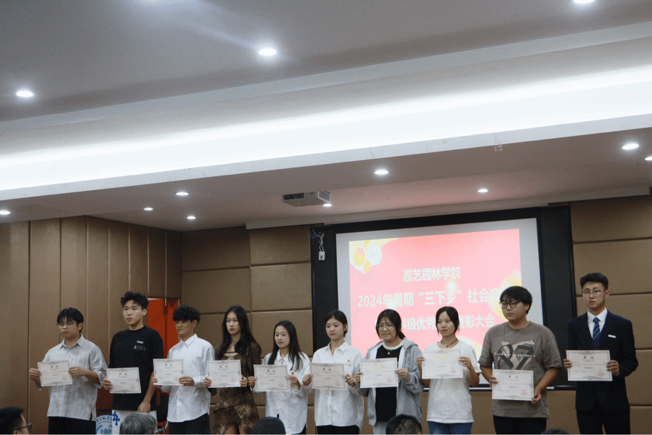 2024年10月16日,园艺园林学院团委于创业大讲堂举办2024年暑期三下乡社会实践暨优秀助导表彰大会。园艺园林学院党总书记徐捷老师、党总支委员程晓琳老师、学工办负责人林成圣老师、团委书记林雨龙老师、专职辅导员周俐、张蓝老师参与了本次大会。