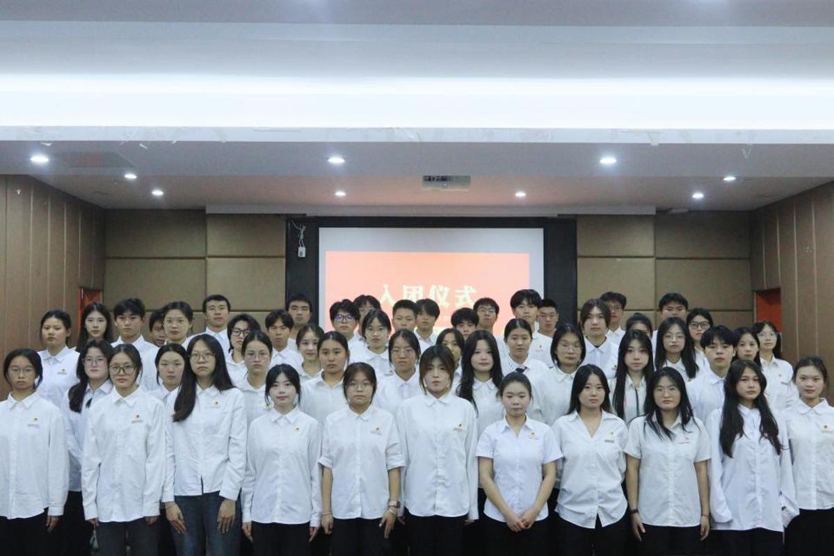 林雨龙老师郑重宣读了50名新团员名单。随后,优秀团员代表们上前将熠熠生辉的团徽佩戴在新团员的胸前。那一刻,团徽与灼灼目光交相辉映,信仰与荣光在眸中流转。自此,他们的人生脉搏将与新时代同频,以青春奋斗追随党的旗帜,谱写壮丽篇章。
