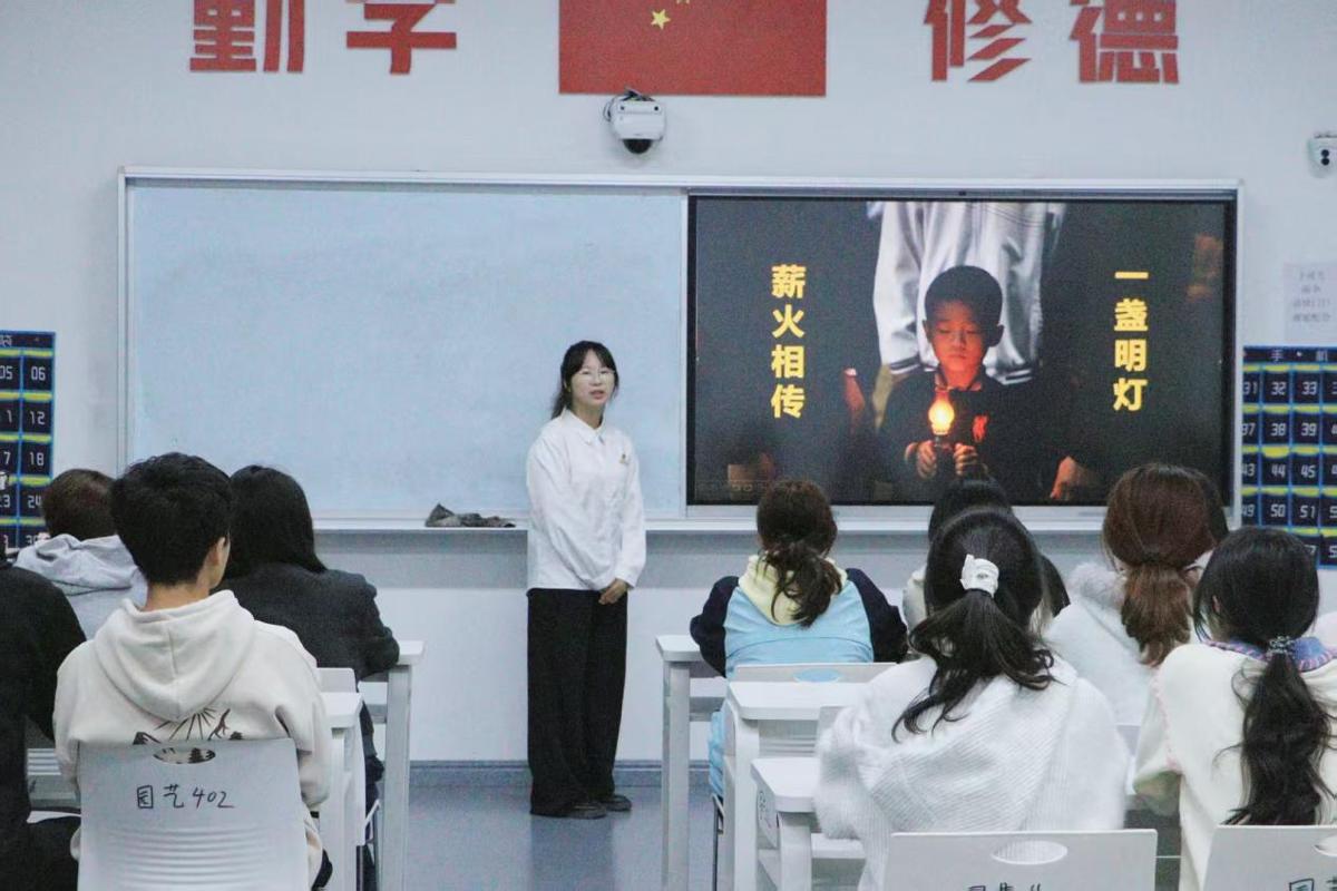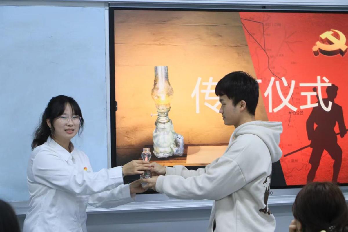 宣讲现场余淑琪同学结合伯公灯背后的革命历史与时代内涵,生动讲述了先辈们在艰难险阻中坚守信仰、勇担使命的英雄事迹。在“传灯仪式”环节,余淑琪同学手持象征精神传承的“伯公灯”,将其传递给各团支部书记。接过“灯火”的同学纷纷表示,将以伯公灯精神为指引,把爱国情、强国志、报国行融入日常学习和工作中,在新时代的征程上勇挑重担、砥砺前行,让伯公灯精神代代相传、熠熠生辉。