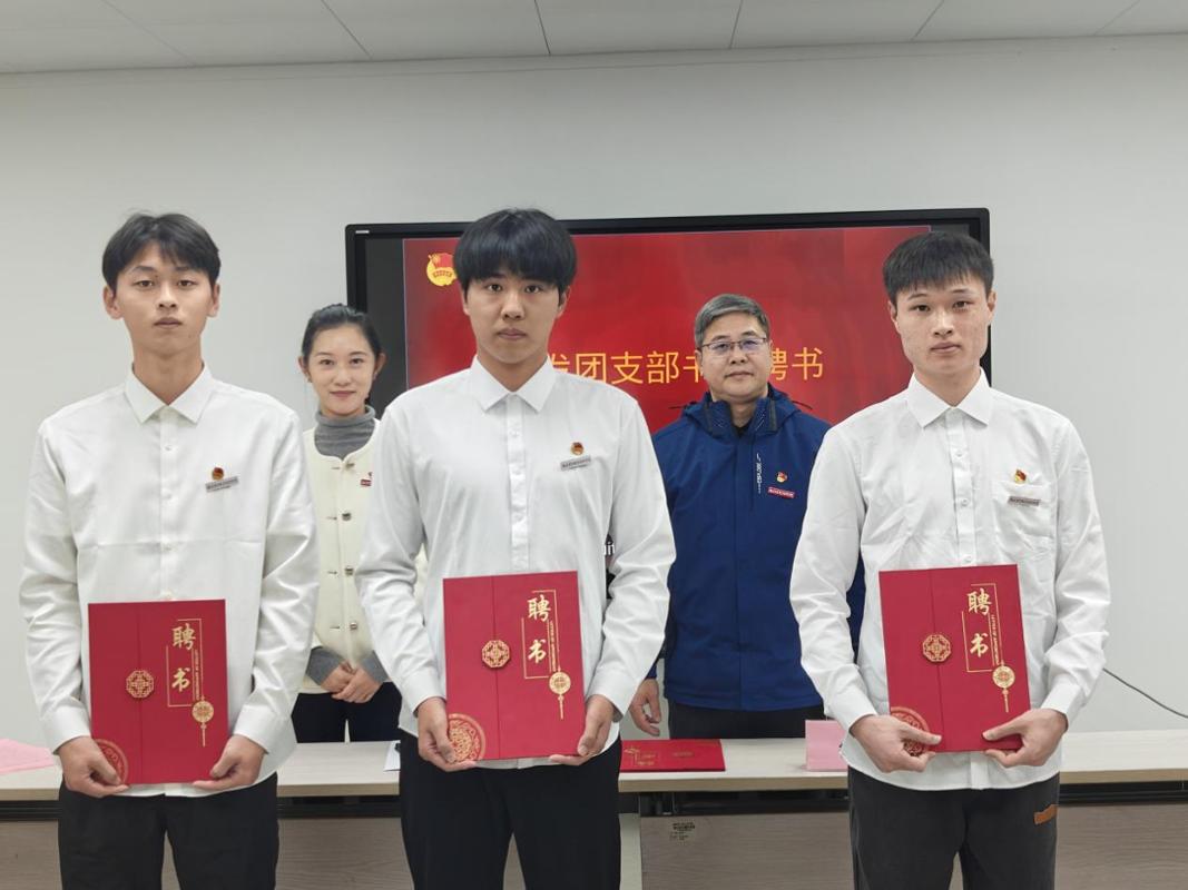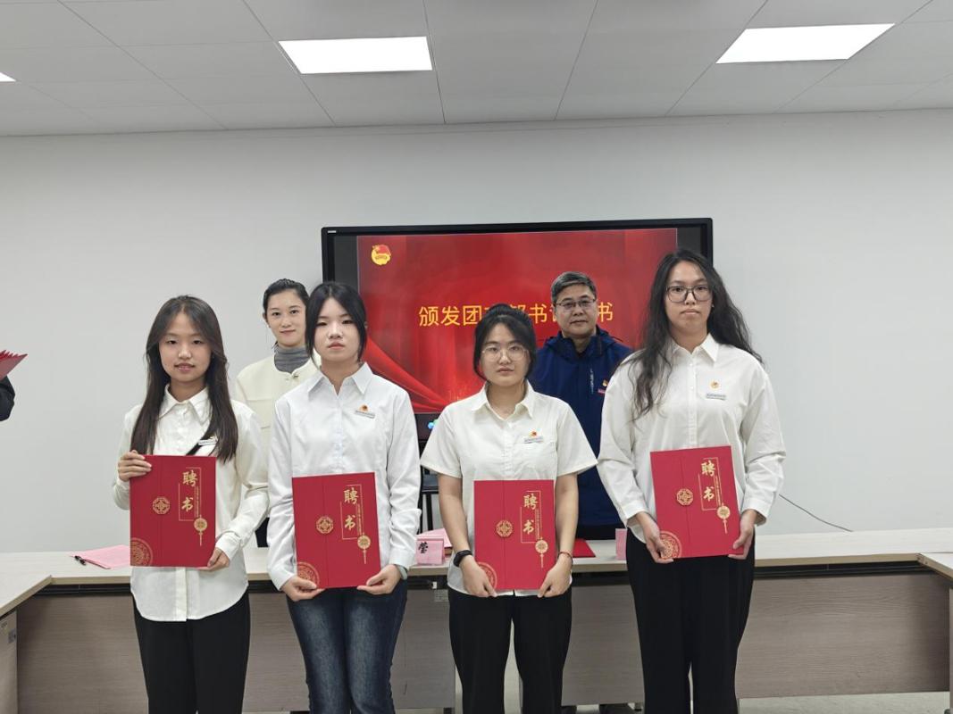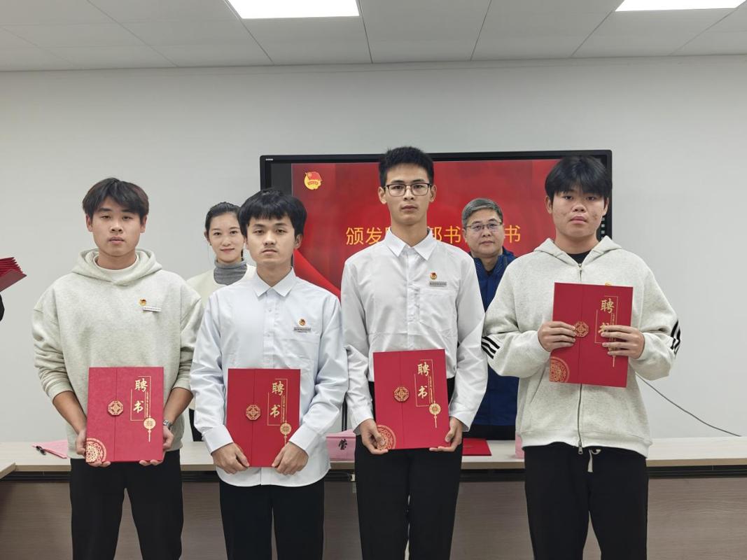 仪式上,学院团委书记林雨龙宣读团支部成立文件与组织设置,明确其核心职责 —— 以共青团引领为抓手,将学生社区打造为有温度、有力量、有内涵的育人空间。随后,与会领导为5号楼、9号楼、11号楼、2号楼学生公寓楼功能型团支部书记们颁发了任职聘书,17 位团员接过聘书,正式肩负起引领社区团员成长的重任。