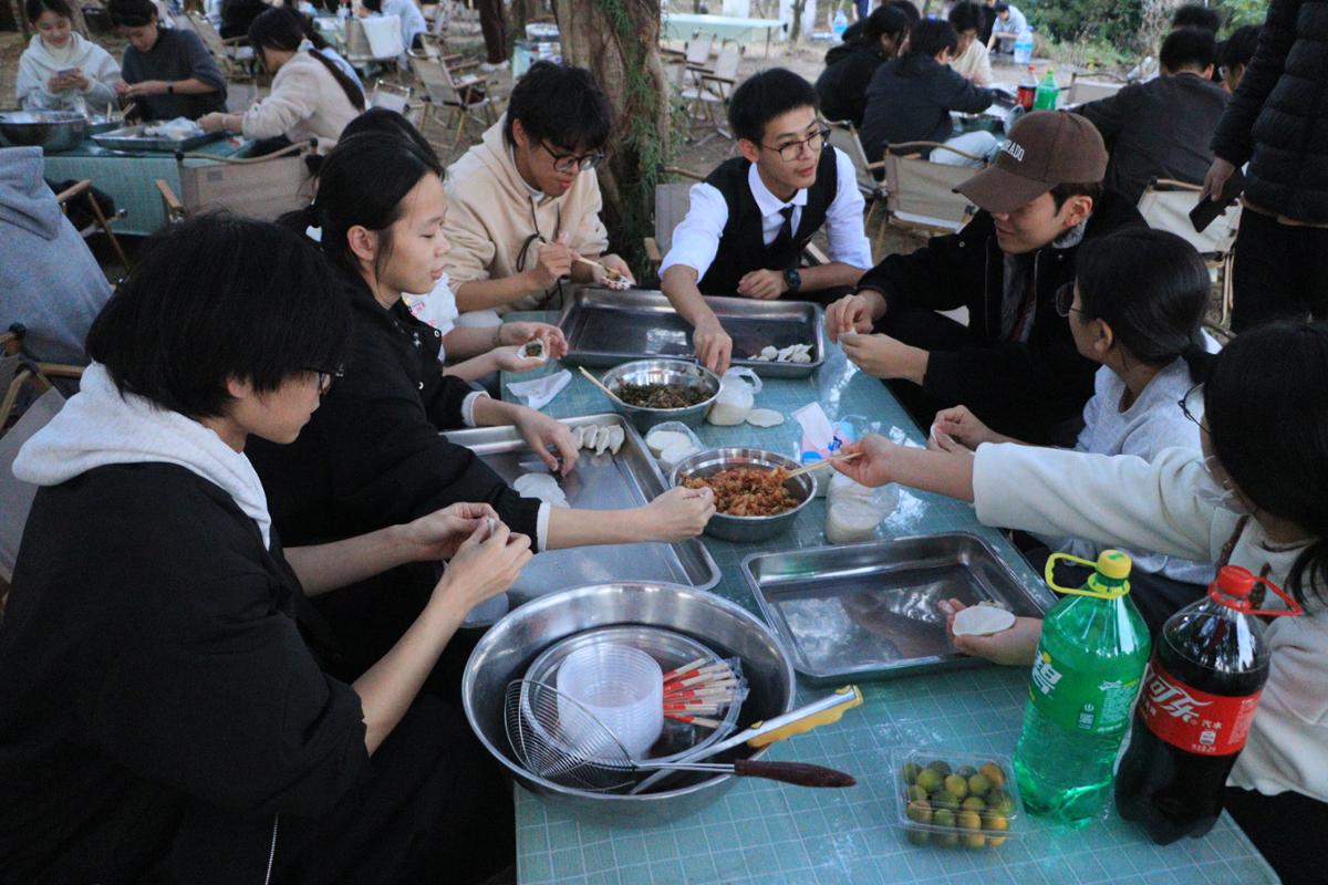 师生共同包饺子