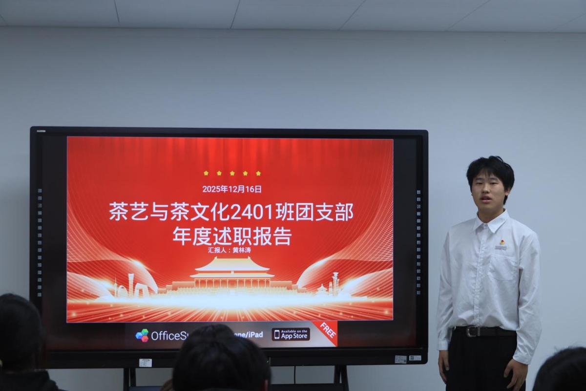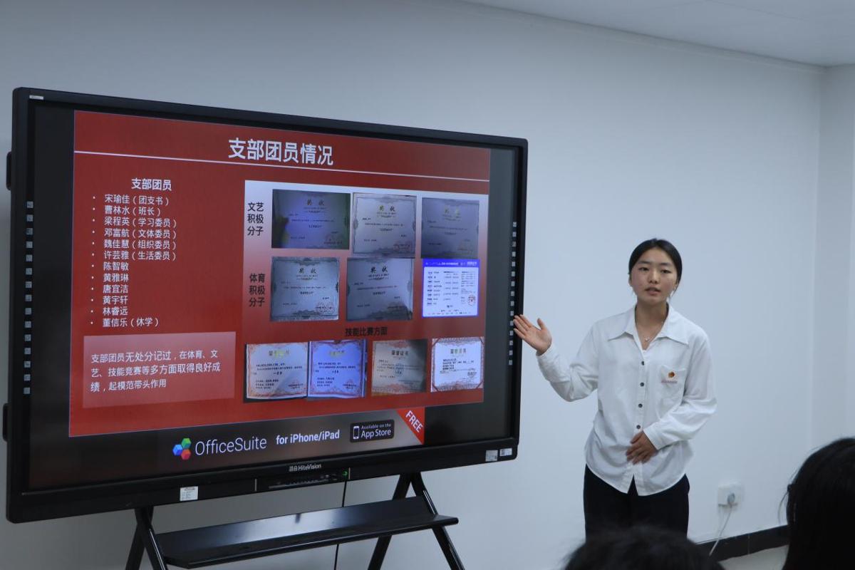会上,各班团支部书记依次进行述职。大家通过内容详实的PPT演示,围绕思想教育、组织管理、主题活动、志愿服务及学风促进等多个方面,全面梳理并汇报了本年度支部工作的开展情况,既展示了基层团组织的活力与成效,也对工作中存在的不足进行了反思。