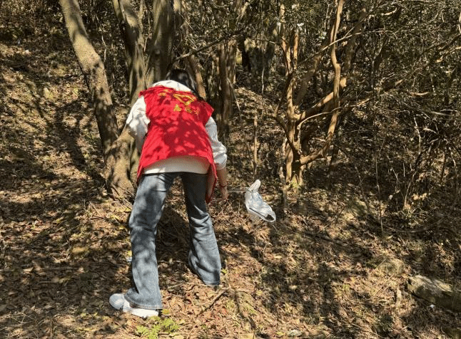 随后,师生分组开展“巡河护水·青山行动”。队伍沿大姆山草场及大山湖沿岸清理塑料瓶、枯枝、露营遗留垃圾等污染物。同时,党员们主动向周边游客讲解生态保护知识,用实际行动诠释"绿水青山就是金山银山"的理念。