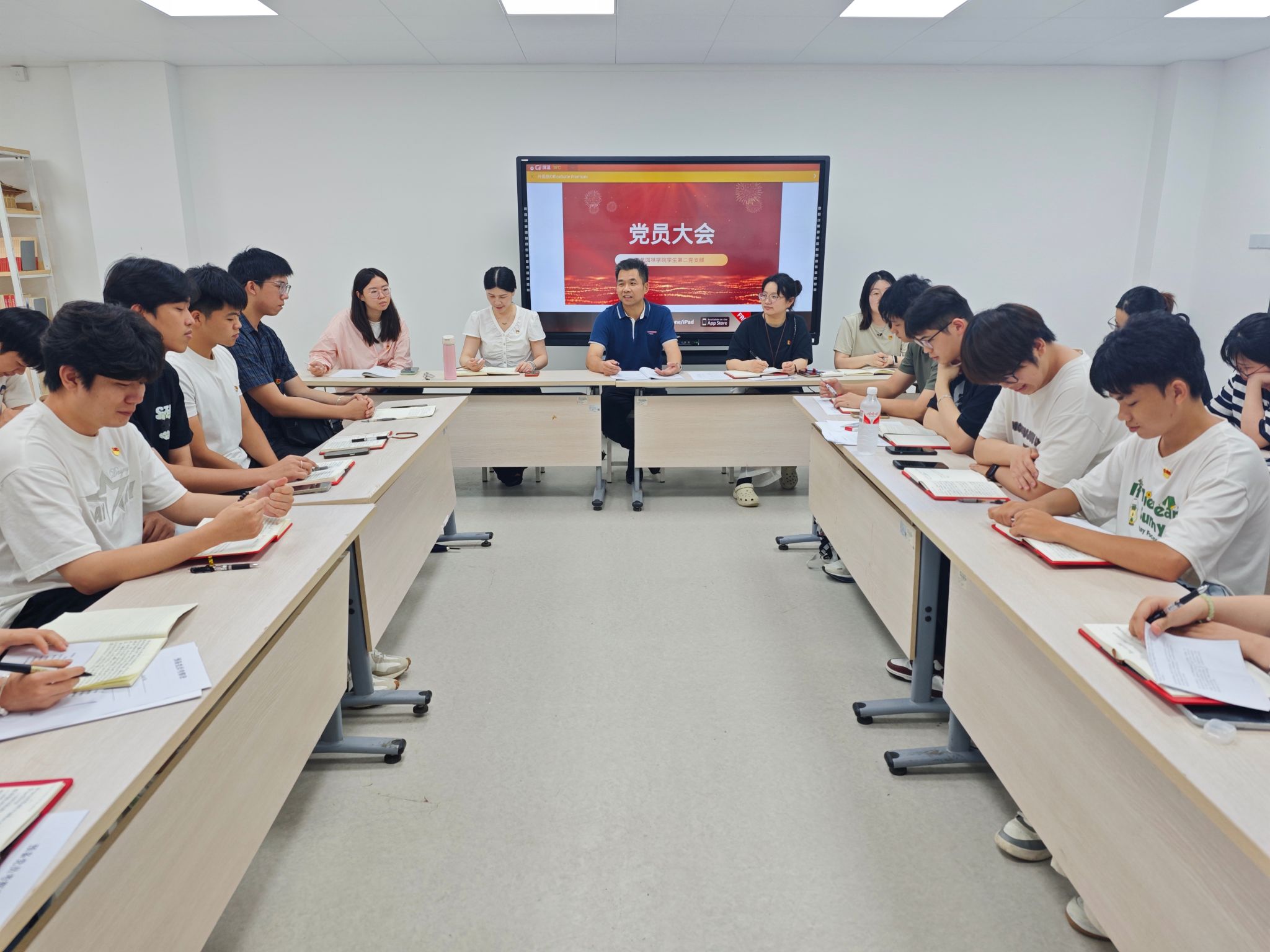 5月23日下午,园艺园林学院学生第二党支部在“爱农”学生社区组织开展5月份主题党日活动,支部全体党员参加学习,学院党委委员、组织部部长陈新福出席会议。
