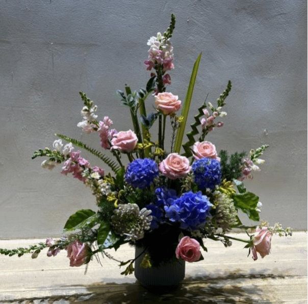 活动中,花卉生产与花艺专业学生结合自身专业所学、以绣球花为主题、就地取材,用自己灵巧的双手,将采来的花材,配以枝叶点缀,精工裁剪,再根据不同的色彩、形状整合到一起就形成了一幅幅独具匠心又饱含深意的插花作品。