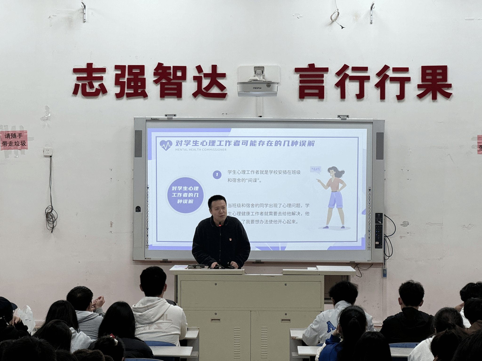 培训开场,林成圣老师深入阐释了心理委员与宿舍安全信息员在学院心理健康教育网络中的关键角色与职责,强调了他们作为基层心理“守护者”,承担着倾听同学心声、发现潜在心理隐患的重要任务。林老师通过丰富的案例,详细讲解了心理危机事件的识别方法与处理流程,为学员们提供了实操性强的工作指引,帮助他们提升危机应对能力。