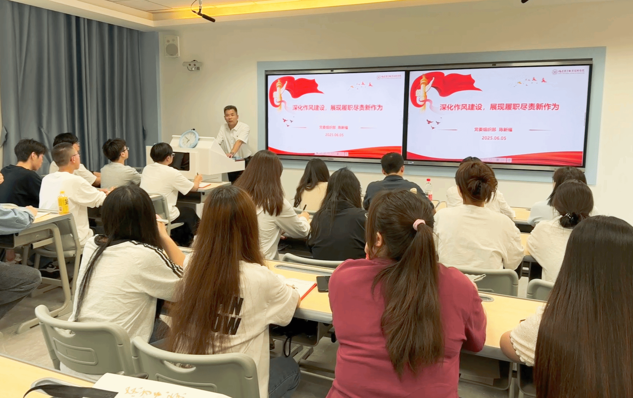 为深入学习领会和贯彻中央八项规定及其实施细则精神,引导师生党员锤炼党性、提高思想觉悟。2025年6月5日,校党委委员、组织部部长陈新福深入所联系基层党支部,以“深化作风建设 展现履职尽责新作为”为题讲授专题党课。组织部党支部和园艺园林学院学生第二党支部全体党员及部分入党积极分子参加。
