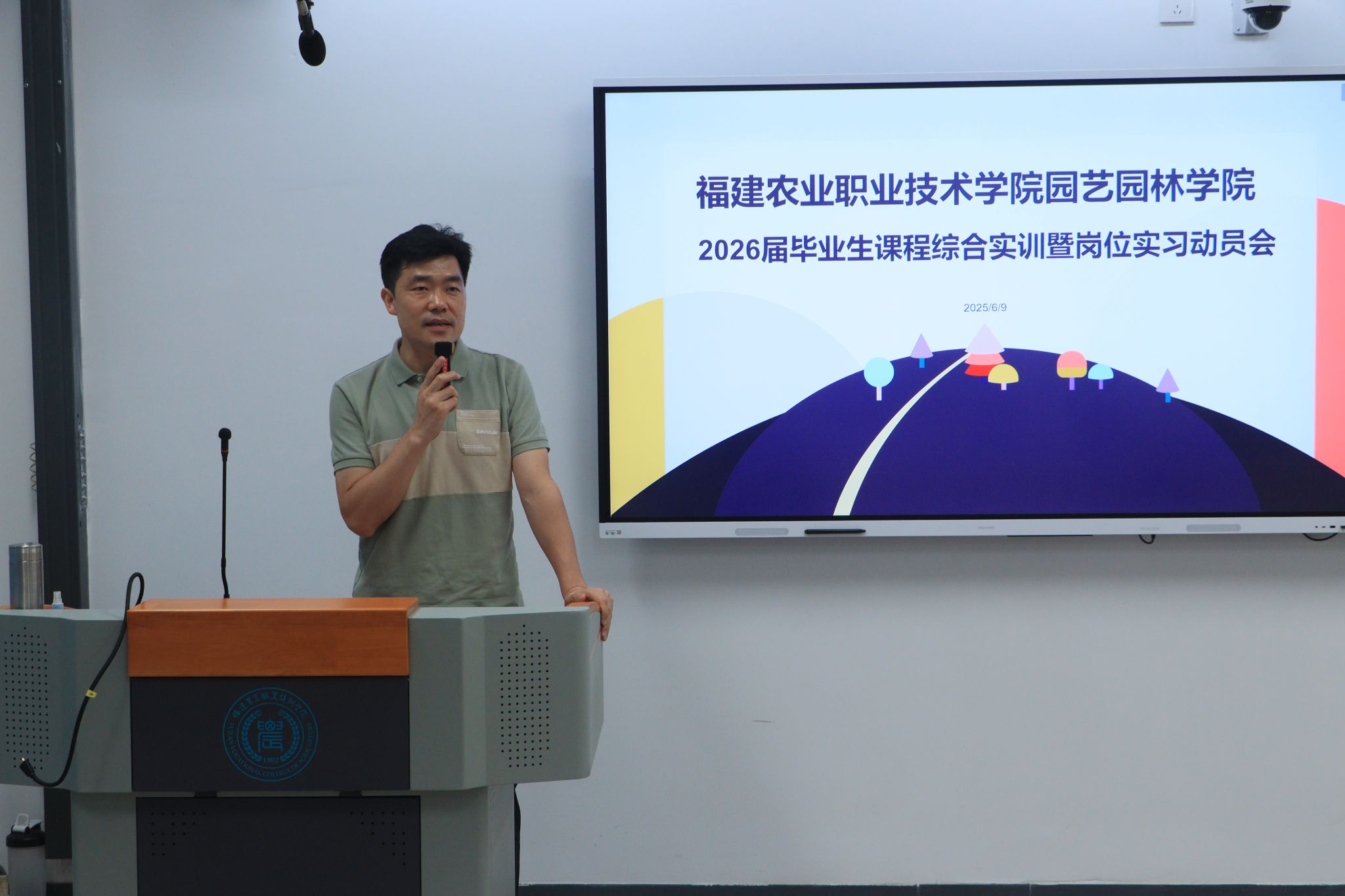 2025年6月9日晚,园艺园林学院2026届毕业生实习动员暨就业指导大会在动科大楼604教室顺利召开。会议采用“主会场+分会场直播”模式,由学院党总支副书记吴伯文主持,学院党总支书记徐捷、院长王会全、实习指导老师、毕业班辅导员及全体2026届毕业生参与。