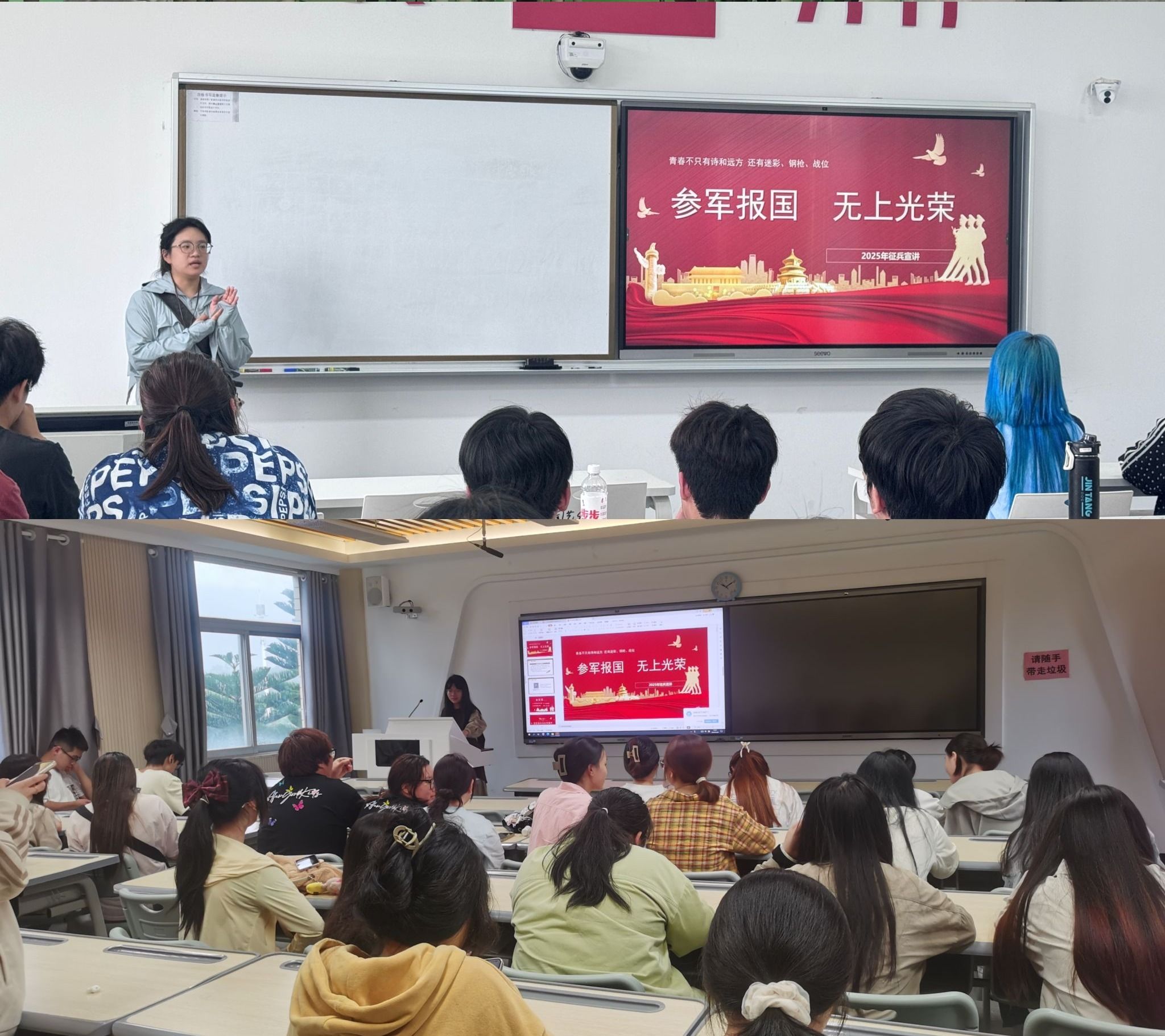 自6月3日至12日期间,学院辅导员开展39场征兵主题班会,确保了精准动员无遗漏。在班会上,辅导员讲述了军旅生活的意义与价值,点燃了同学们投身军旅的热情。