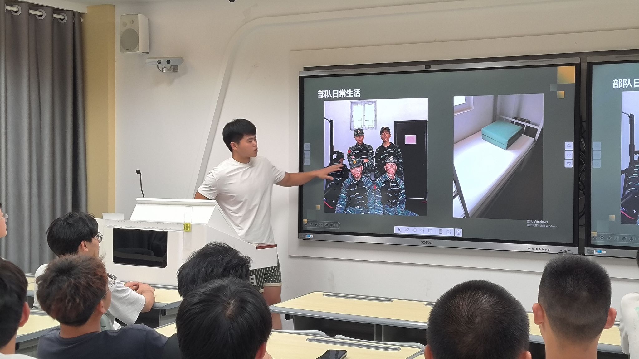 学院优秀退伍学生王志越、林智文也来到现场,分享了自己的军旅生涯。他们用亲身经历讲述了丰富多彩的部队生活,以及参军对个人成长和职业发展的积极意义,生动展现了参军报国的价值与荣光。现场气氛热烈,同学们深受鼓舞。