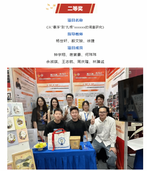 近日,第十七届“挑战杯”福建省大学生课外学术科技作品竞赛决赛圆满收官。我院调研作品《从“悬浮”到“扎根”:大学生志愿服务助力乡村振兴的成效洞察和机制进阶研究--基于福建省5年3416位志愿者的调查研究》,在全省72所高校、1850件参赛作品的激烈竞争中脱颖而出,荣获二等奖。