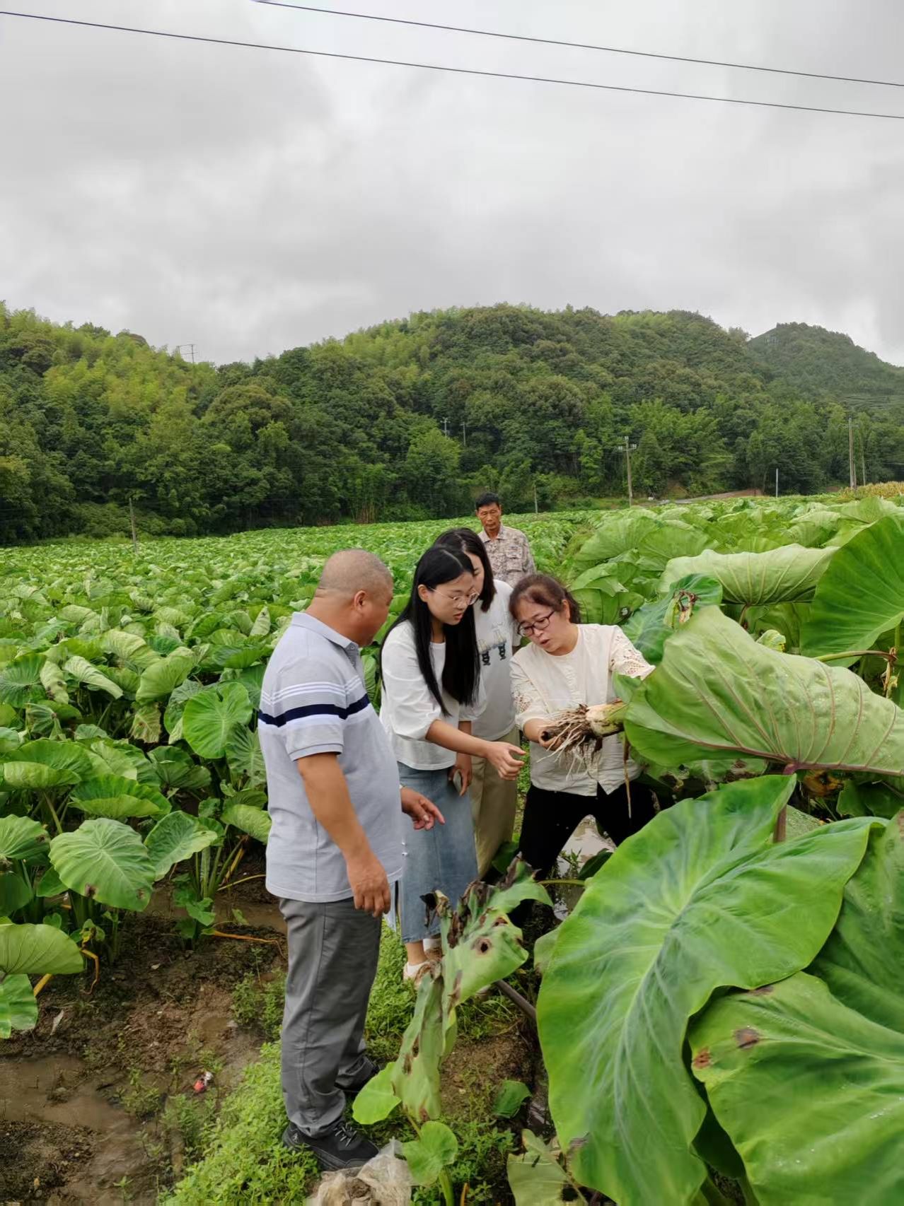 7月21日至22日,应福鼎市乡村振兴促进会邀请,学院迅速选派园艺园林学院章淑玲、黄雪盈两位博士赴当地开展技术指导。在福鼎市乡村振兴促进会副会长陈正良、银发专家顾问团成员林宗学及市科技特派员工作站站长、高级农艺师阙玉林等陪同下,专家团队冒雨深入贯岭镇文洋村、何坑村、透埕村及管阳镇章边村等槟榔芋连山种植区,实地查看芋田病虫害发生情况,同时与当地企业、合作社、种植大户、技术人员等进行深入交流,详细分析病害成因,并采集样本带回学校实验室进一步检测。