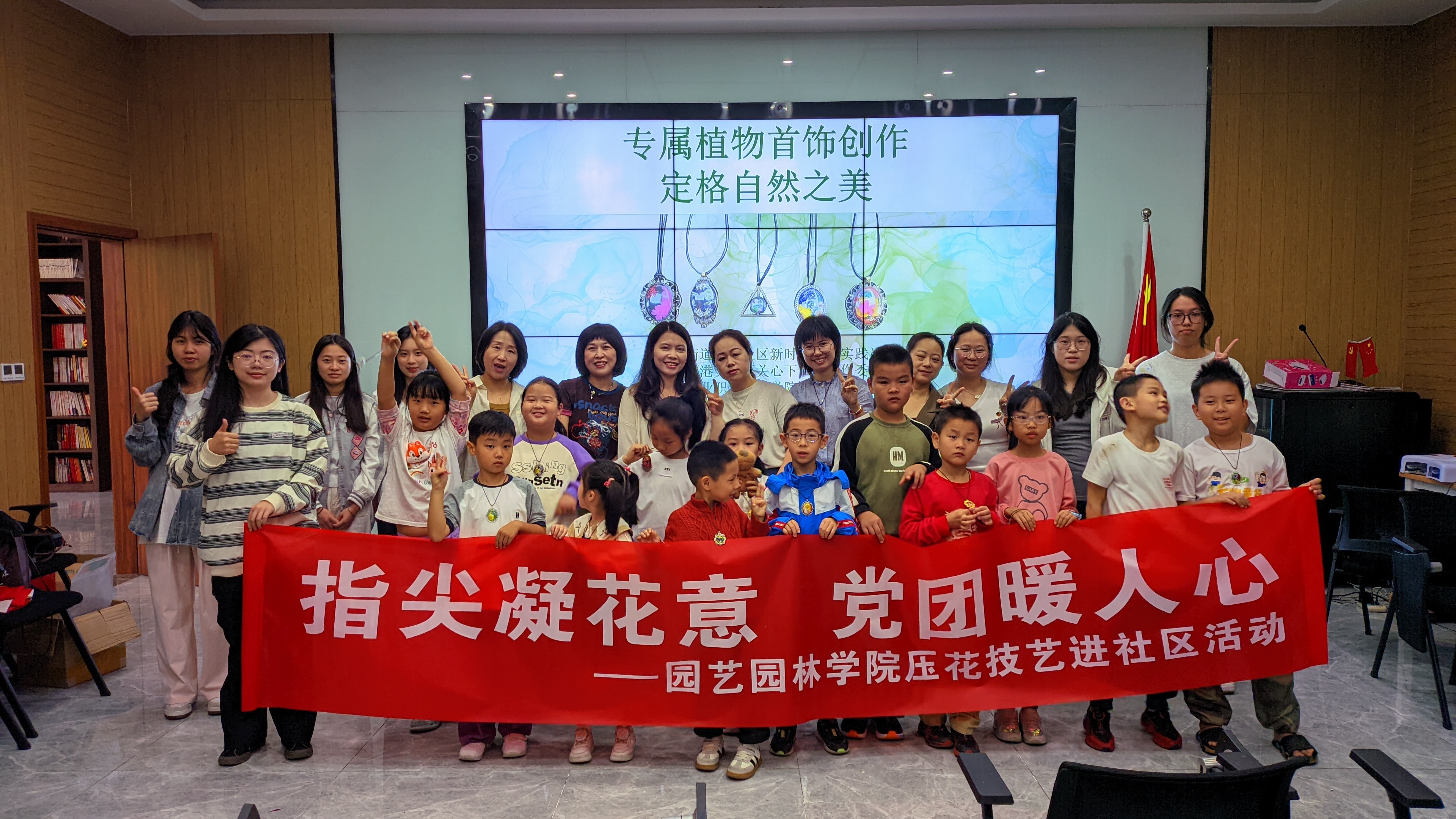 秋风送爽,草木含香。为传承传统手工艺文化,发挥党团组织服务群众的先锋模范作用,10月26日上午,园艺园林学院教师代表、学生党员及团员志愿者们走进下渡街道港头社区,开展 “专属植物首饰创作 定格自然之美” 主题活动,带领社区小朋友们以秋日植物为媒,用压花技艺编织专属童趣与美好。