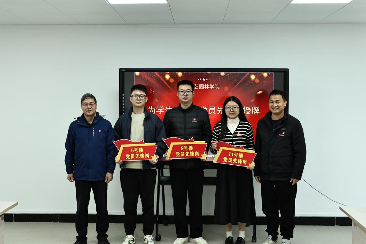 (颁发学生公寓楼宇“党员先锋岗”标识牌)