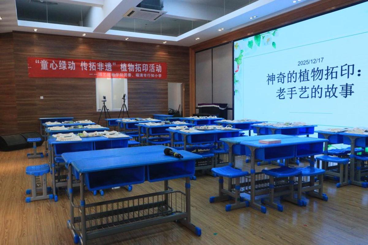 2025年12月17日下午,园艺园林学院团委联合福清市行知小学,开展“童心绿动 传拓非遗”植物拓印主题活动,52名小学生在趣味实践中近距离感受非遗文化魅力。活动由学院党总支副书记李雪宁、团委书记林雨龙带队,25名“园小艺”志愿服务队队员全程组织开展。