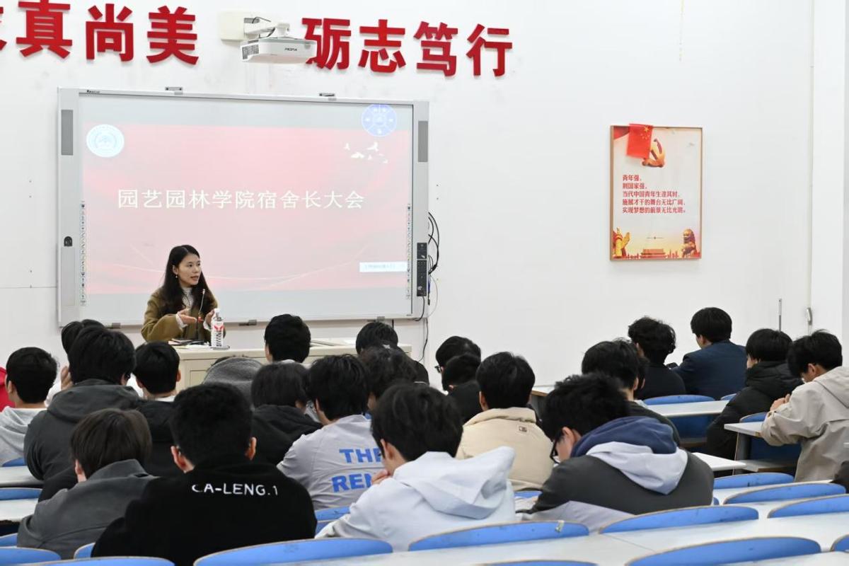 为强化学生社区精细化管理,筑牢育人阵地基础,营造安全、文明、和谐、进取的宿舍环境,12月24日下午,园艺园林学院召开全体宿舍长会议。学院党总支副书记李雪宁、辅导员张楠以及2024级、2025级全体宿舍长参加会议。