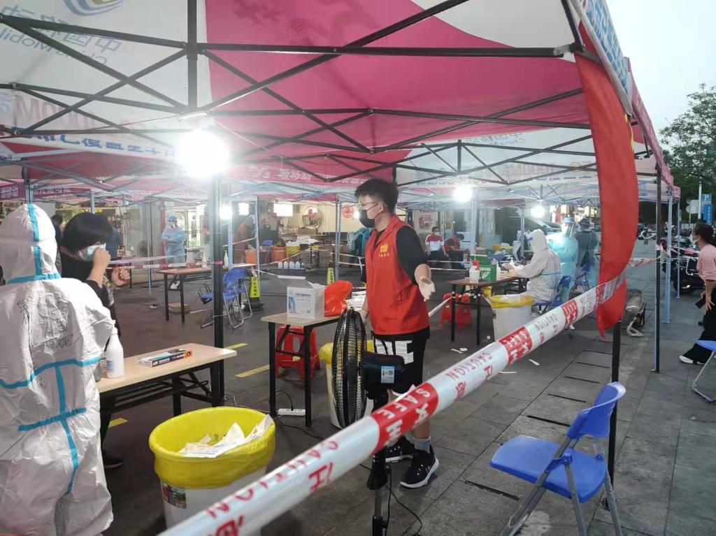 自3月11日以来,福建漳州、泉州、厦门等地陆续发现新冠肺炎无症状感染者和确诊病例,福建省疫情防控进入关键时期。因疫情暂缓返校的我院学子、入党积极分子洪安霖积极加入到泉州市丰泽区东湖街道圣湖社区疫情防控志愿者队伍,配合社区医护工作人员有效开展核酸检测秩序维持、疫苗接种、隔离送餐、防疫物资发放等工作任务。