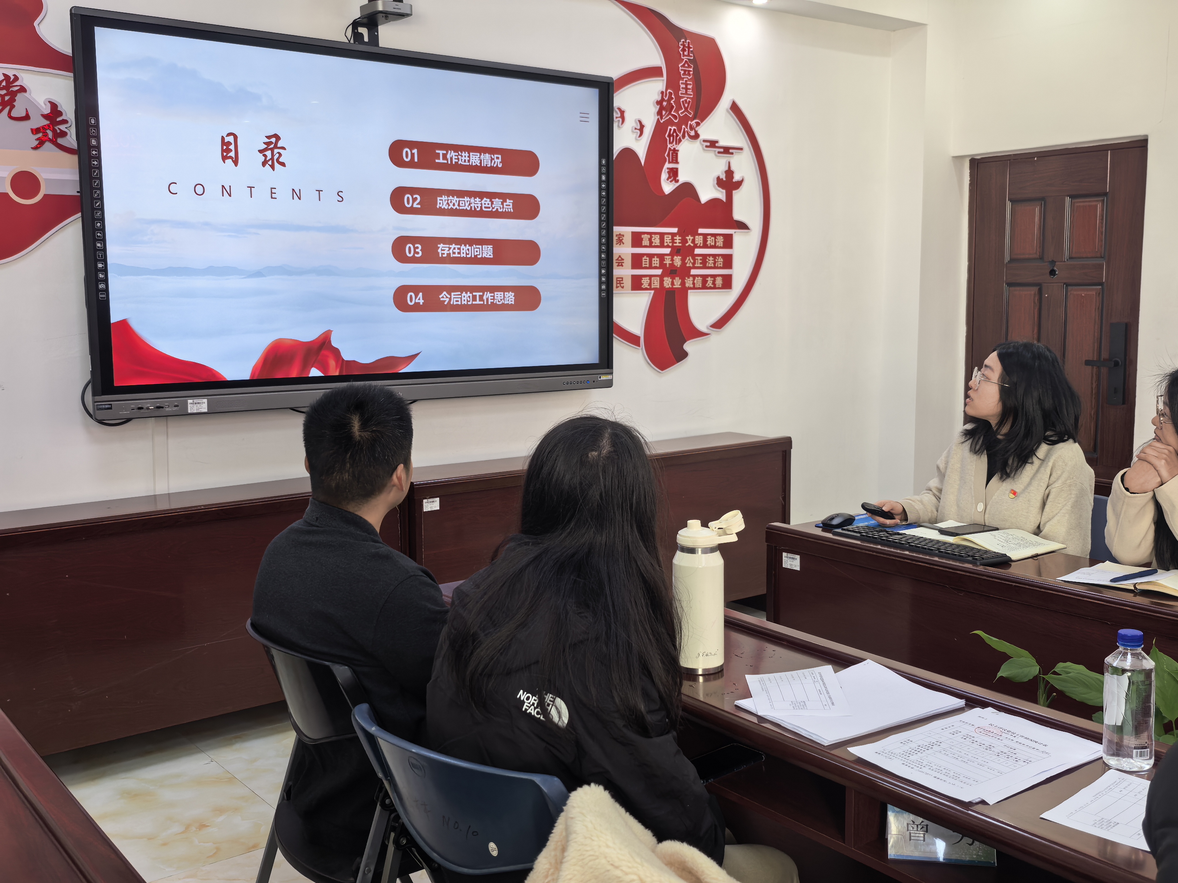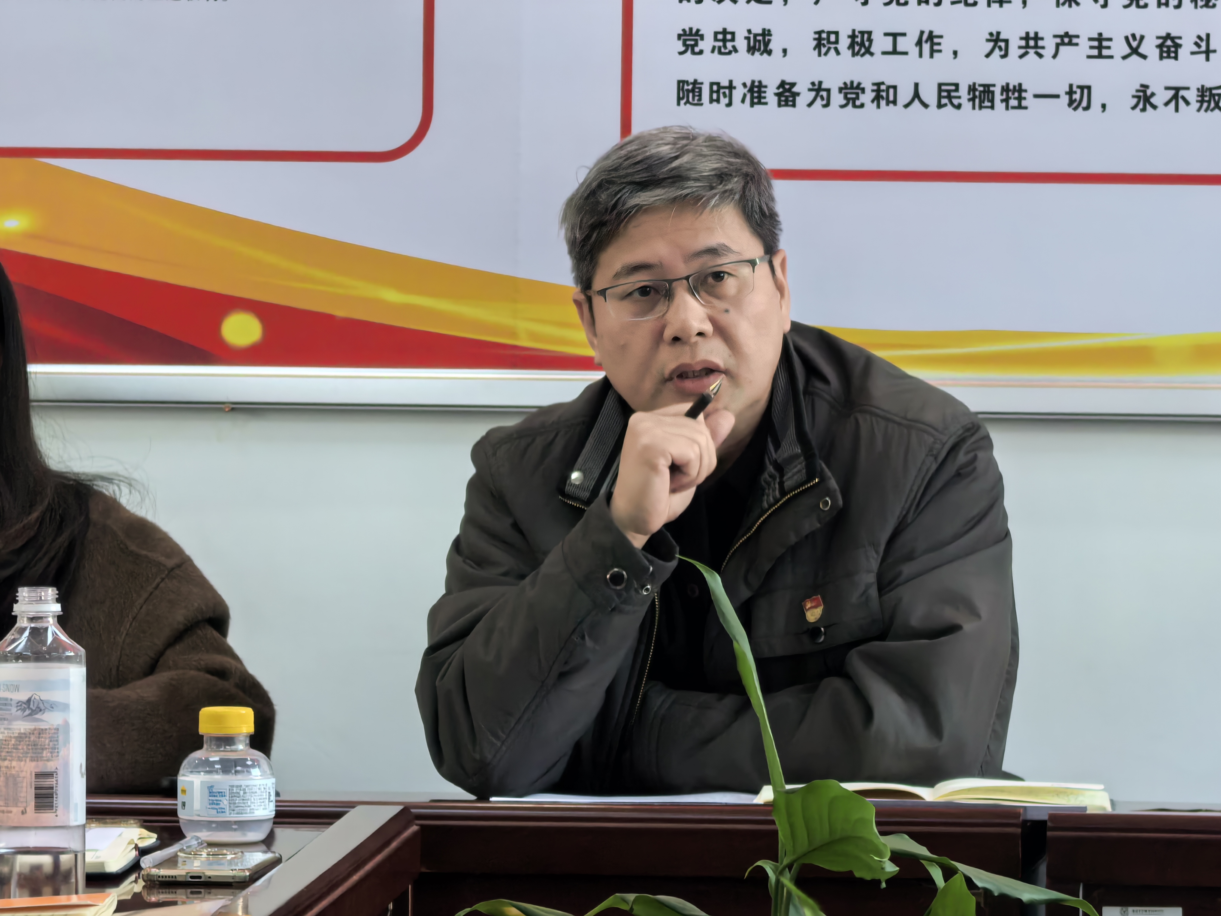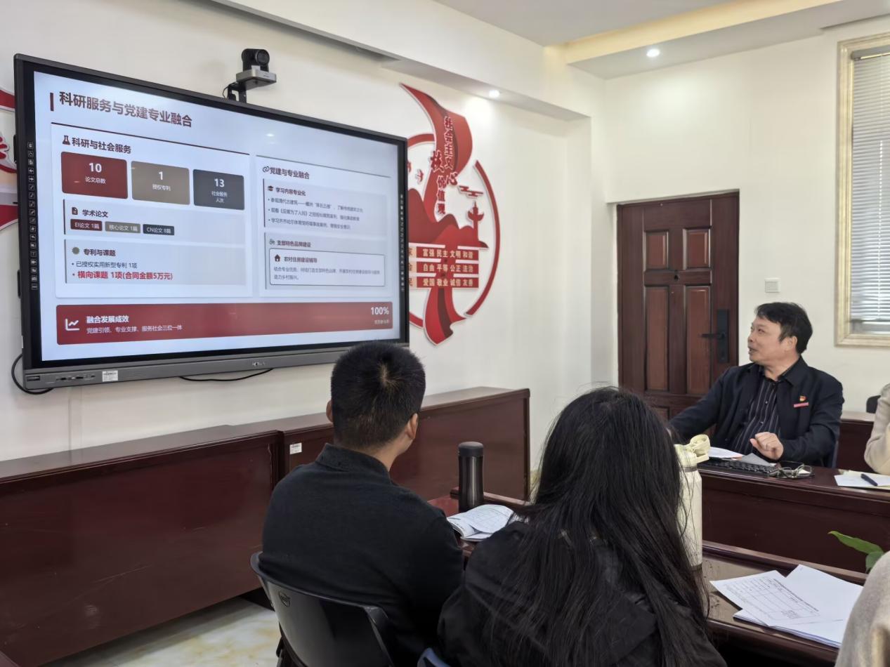 会上,教工第一党支部书记张盛旺、教工第二党支部书记尤文贵、学生第一党支部书记周俐、学生第二党支部书记贾婷依次进行现场述职。四位党支部书记围绕2025年度履职情况,重点汇报了在强化政治建设、落实“三会一课”制度、推动党建与业务深度融合、发挥党员先锋模范作用、提升服务师生与社会水平等方面的具体举措与实际成效,并深刻地剖析了当前工作中存在的短板与不足,提出了下一步改进思路。各支部述职内容充实、重点突出,既展现了党建工作特色与亮点,也体现了直面问题、务实改进的诚恳态度。