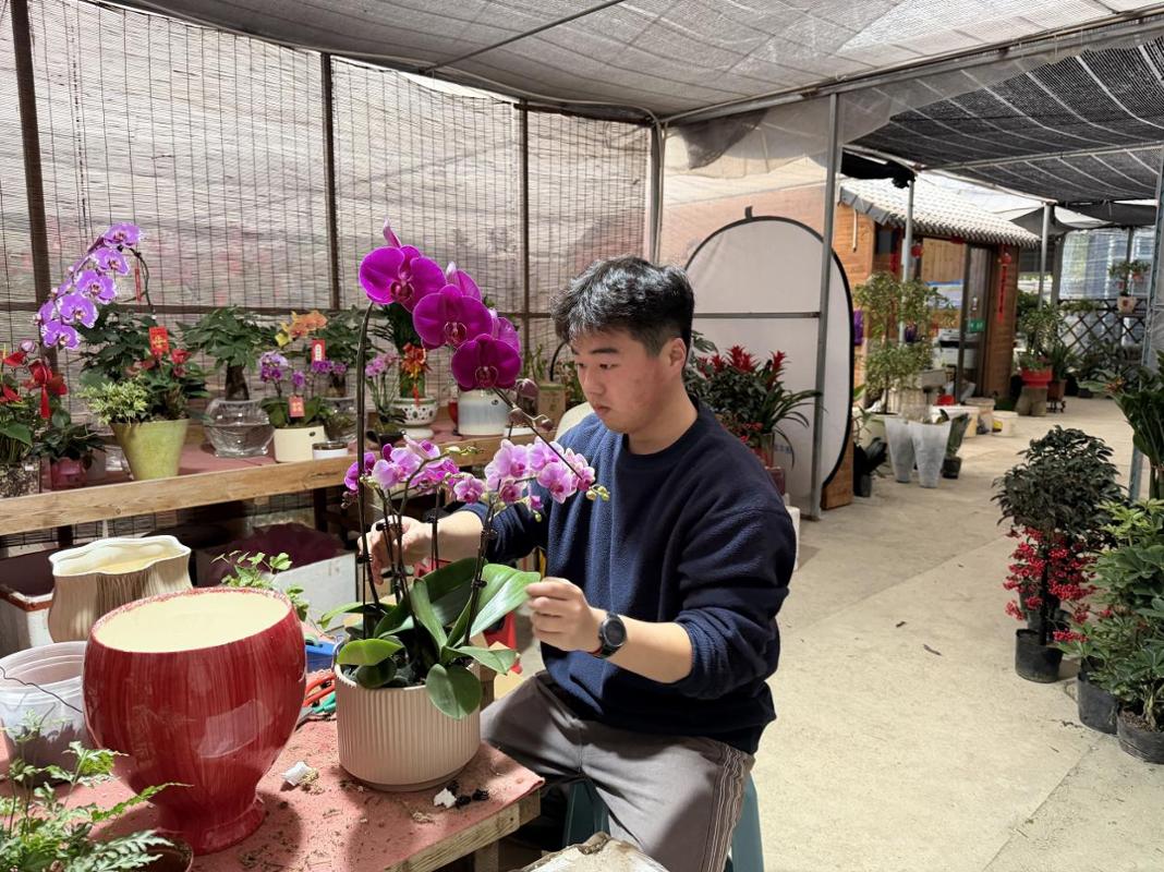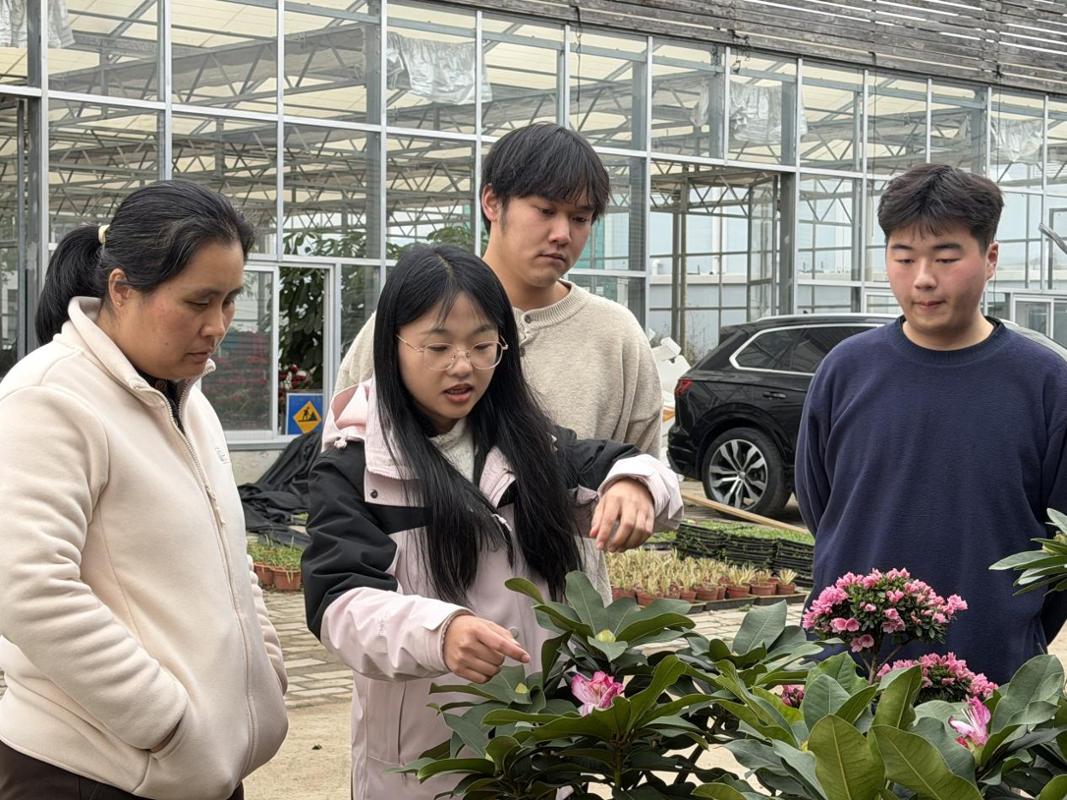 徐捷书记与正在该公司实习的毕业生亲切交流。园艺技术2301班王涛同学分享了实习体会,表示通过参与花卉养护、苗木繁育、订单对接等工作,深化了对专业知识的理解,增强了实践能力,也认识到技术与市场结合的重要性。同班李逸恒同学谈到,实习让他从“园艺小白”逐步成长为能独立处理多项工作的准职业人,不仅掌握了实用技能,也对园艺产业全链条运作有了更清晰的认知,提升了综合职业素养。企业方对实习生的表现给予积极评价。