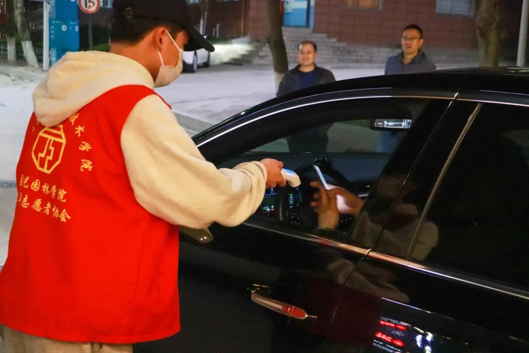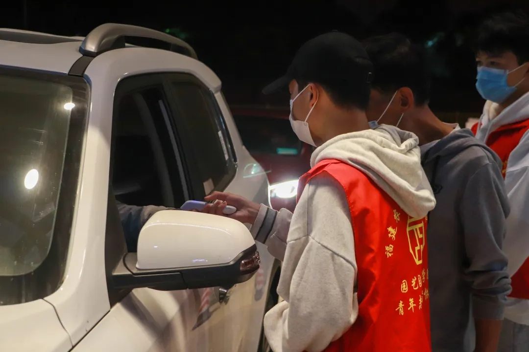 在这关键的时刻,志愿者们勇敢担当,积极配合学校开展防疫工作。志愿者们严格管控校门,对所有进校人员进行测量体温,并检查证件、查看“健康码”及行程码。志愿者们认真负责的态度对待防疫检测工作,用青春热血筑起疫情防控的坚强防线,以实际行动为疫情防控贡献青春力量。