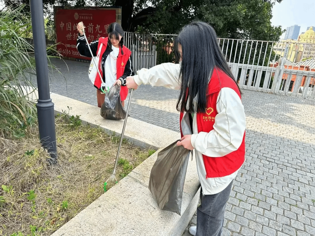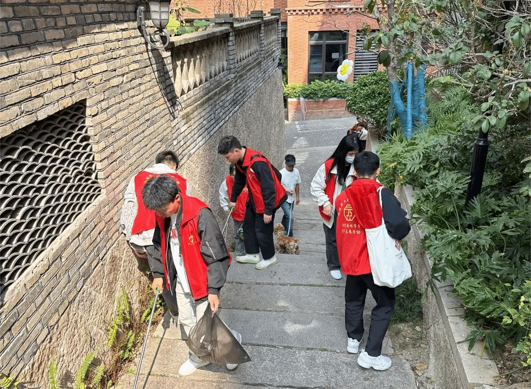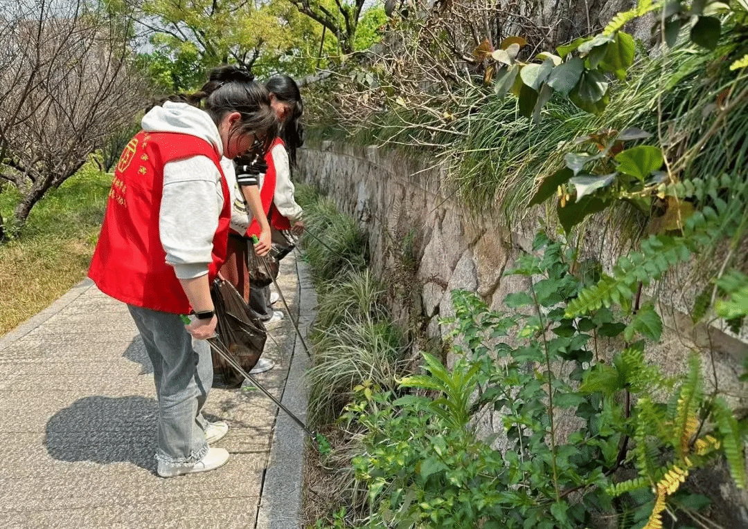 随后,青年志愿者们分为三组走进烟台山践行雷锋精神,进行志愿活动。
