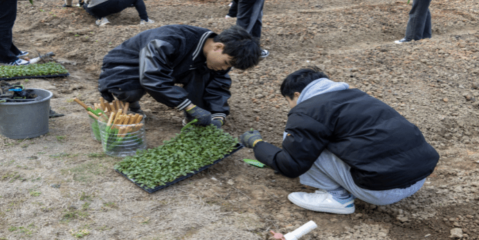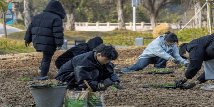 2月25日上午,全体在校党员与入党积极分子在党总支徐捷书记、林燕芳副院长和教工第一党支部党员张盛旺老师的带领下,有条不紊的开展了新农园马鞭草种植任务。