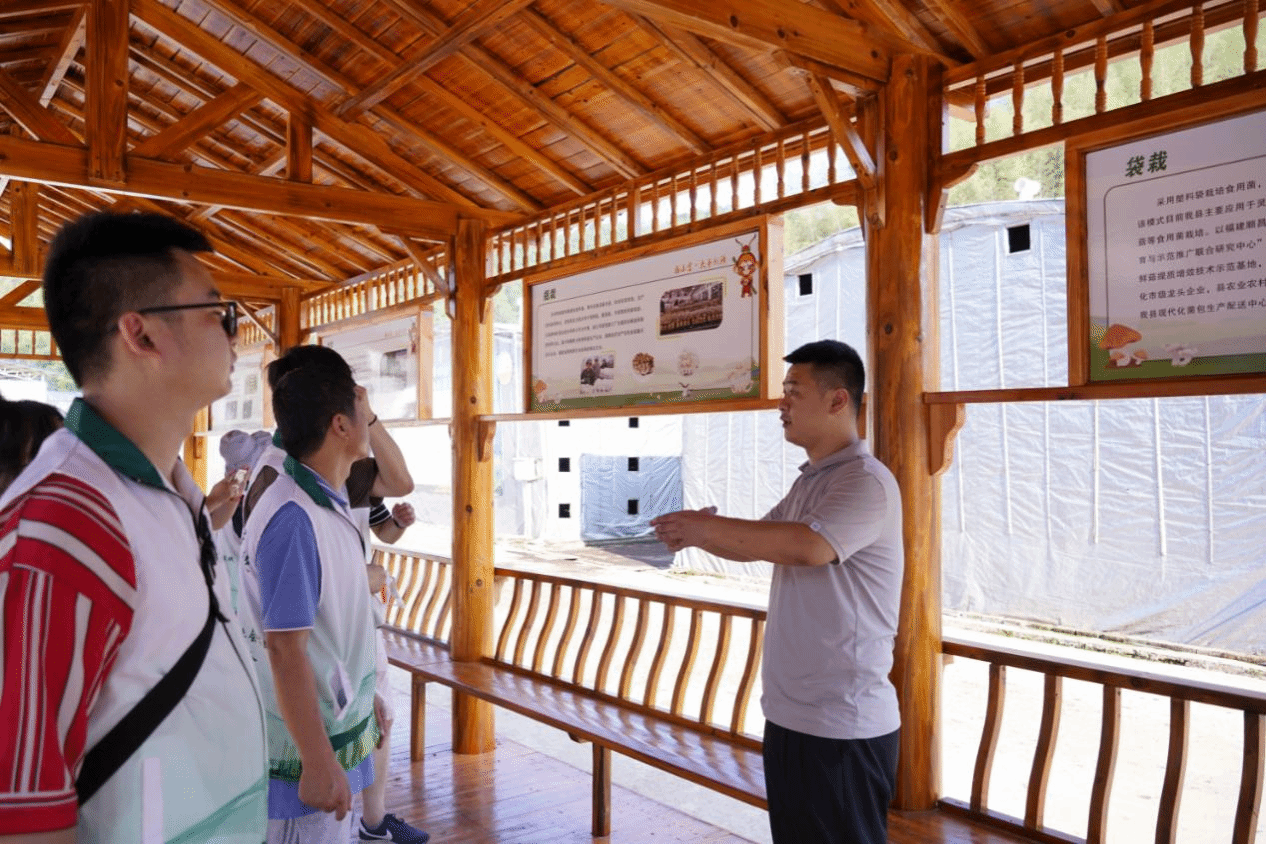 接着,实践团队前往兴源村参观菌菇文化长廊,了解菌菇的有床栽、地栽、瓶栽等种植方式,进入了大棚中参观了菌菇的生长和烘干过程。随后,实践团队又前往顺昌菌菇科技小院参观学习,顺昌菌草科技小院依托福建省顺昌新菌都菇业发展有限公司(前身顺昌县菌种场)建立。公司创建于2008年3月,主要经营真姬菇、姬松茸、竹荪、双孢蘑菇、大球盖菇、杏鲍菇、香菇、毛木耳、长根菇、灵芝和虫草等食药用菌的母种、原种、栽培种,以及菌类产品的研发新品种、加工、销售。