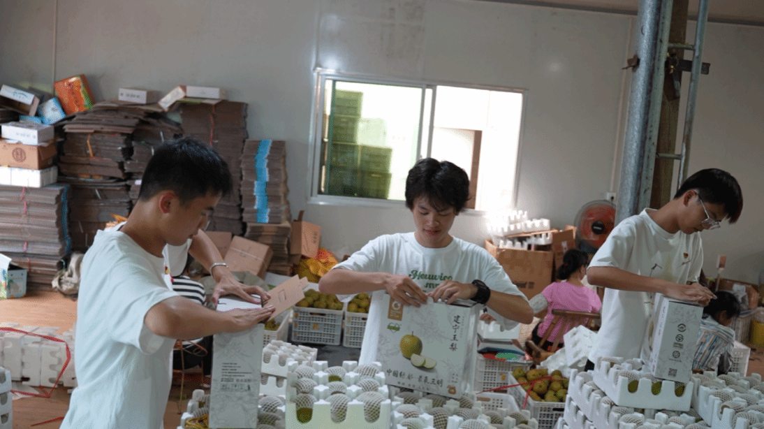 7月7日上午,实践团队走进建宁县春花家庭农场、建宁县联丰果业家庭农场。队员们向农场管理人员请教翠冠梨、翠玉梨种植的相关知识,不惧炎炎烈日与果农一起采摘早熟的翠冠梨、翠玉梨,收获一筐筐的梨后队员们已然汗流浃背,尽管如此队员们仍然马不停蹄加入果品挑选和包装行列中。“建宁的翠玉梨名不虚传,但是品尝自己劳动所获的梨更是分外甜”队员一边品尝翠玉梨一边笑呵呵的说道。