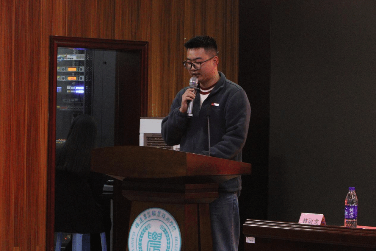 入场式代表张雨杭同学发言:入场式是简单的齐步走、正步走......看似简单却又枯燥乏味,最感动是学院的同学们为了集体荣誉团结一心,自愿贡献一份力量。