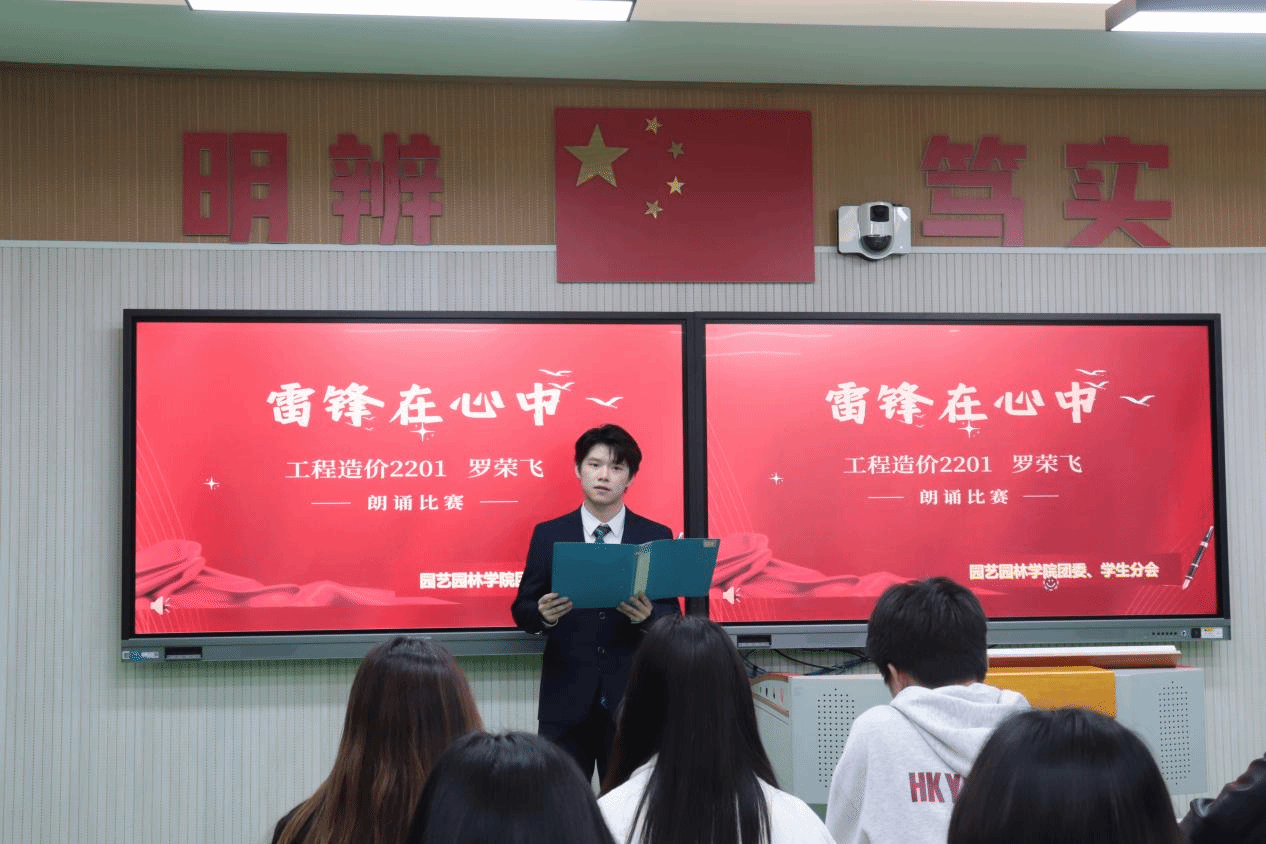 2024年3月21日,园艺园林学院团委、学生分会于教学楼(2)403教室开展“学习雷锋好榜样,传递青春正能量”朗诵比赛。