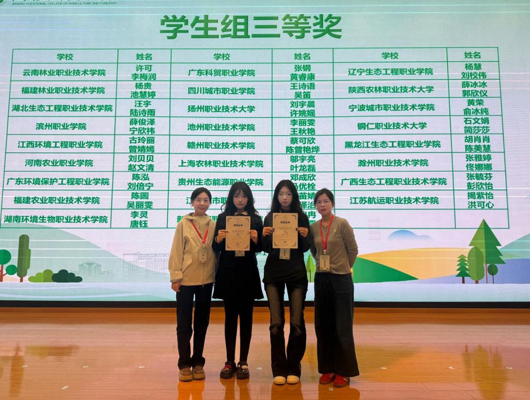 此次成绩的取得,是我院持续推进“以赛促教、以赛促学”教学理念的重要体现,也充分展示了学院在课程建设与技能训练方面的扎实成效。学院将继续深化教育教学改革,进一步强化学生职业技能与创新能力的协同培养,为推动乡村振兴与美丽中国建设输送更多高素质技术技能人才。