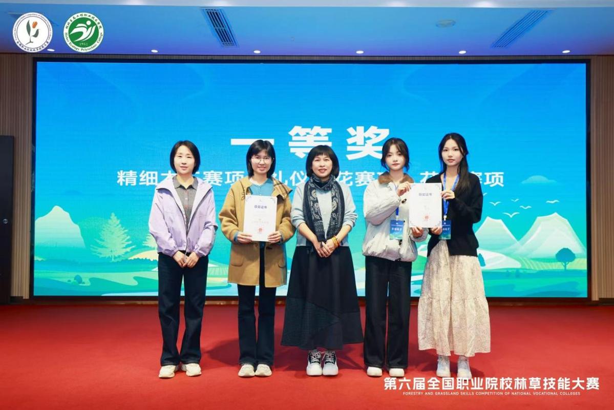 近日,第六届全国职业院校林草技能大赛花艺赛项(高职组)在湖北生态工程职业技术学院圆满落幕。我院学生李敏君、林新怡组成的参赛团队,在张迎辉、黄彦晶两位老师的悉心指导下,凭借精湛技艺与创新创意,从全国53支高职院校参赛队伍中脱颖而出,成功斩获一等奖。