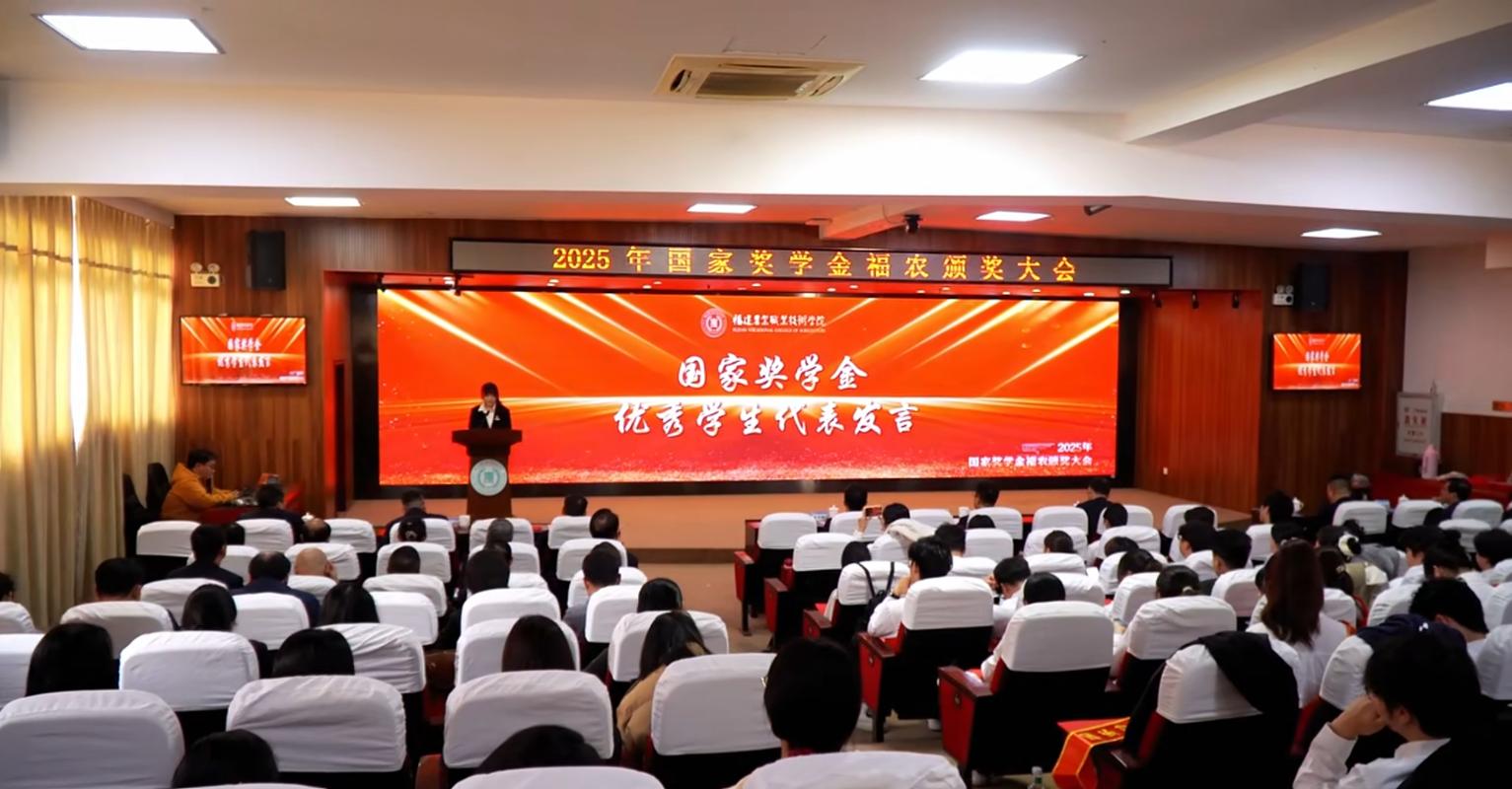 我院国家奖学金获得者陈圆同学作为学生代表在大会上发言,她由衷感谢国家资助政策的关怀与学校、学院提供的成长平台,并向全体同学发出倡议:以勤勉为笔、笃行为墨,在专业领域深耕不辍,将个人理想融入时代浪潮,用青春之力书写报效家国的动人篇章。这一倡议不仅是bat365学子的心声,更是园艺园林学院全体学子的行动指南。