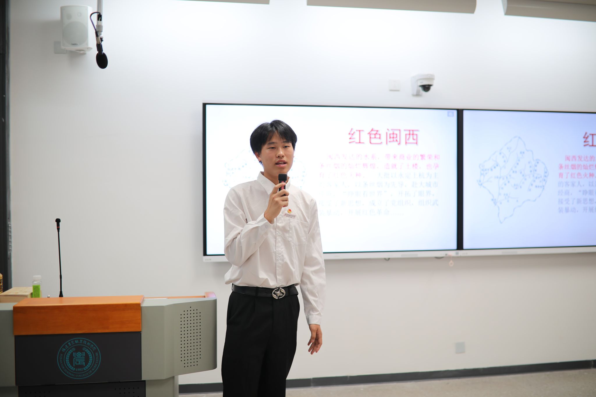 宣讲现场,黄林涛同学依托详实史料,生动讲述了“伯公灯”背后的革命故事。他从土地革命战争时期的斗争历程切入,还原了一盏盏“伯公灯”如何在深夜乡间传递情报、凝聚民心的历史场景,勾勒出革命先辈以信念为灯、以热血为焰的壮丽画卷。使青马班学员在历史回溯中深刻体悟到“伯公灯”所承载的忠诚、坚守与奉献的精神内核。