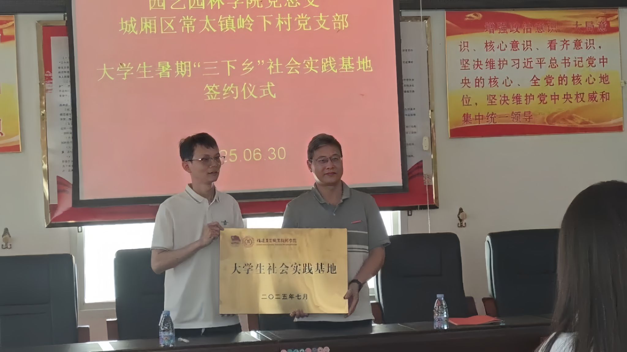 2025年6月30日,园艺园林学院党总支书记徐捷带领院团委书记林雨龙及12名学生组成社会实践队前往莆田市岭下村举行大学生社会实践基地签约授牌仪式。