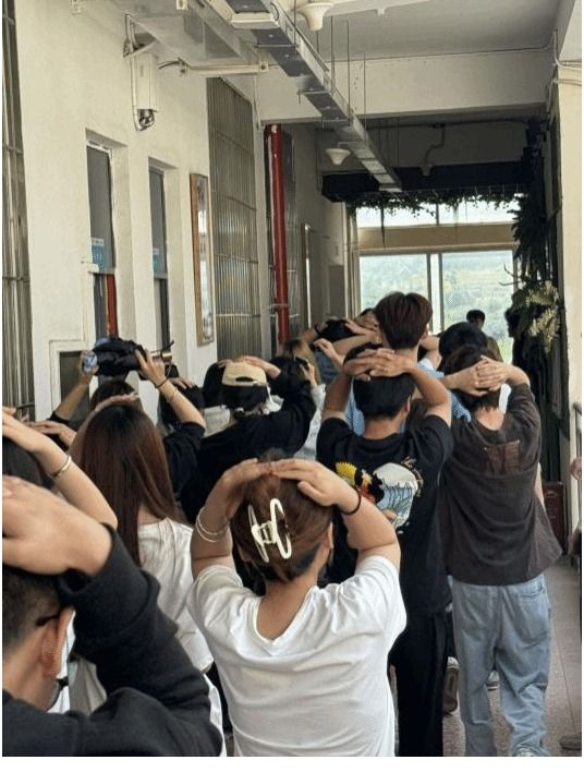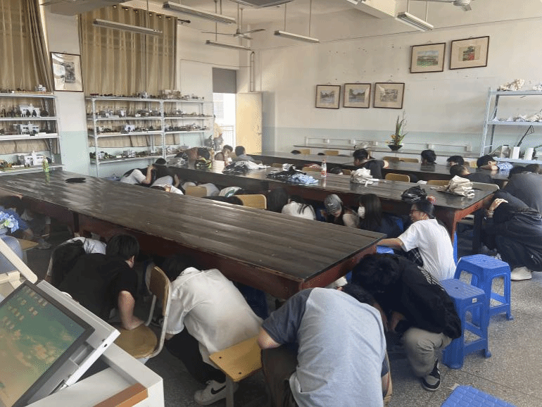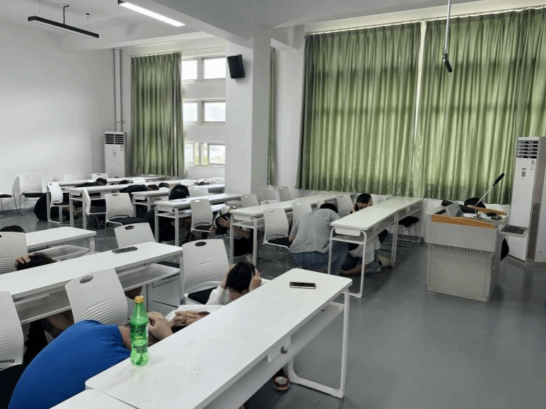 下午3点,随着一声地震预警警报响起,教师们即刻停止授课,立即组织指导学生依托课桌进行避险,各班级辅导员根据紧急疏散信号,迅速组织学生有序向楼梯口、楼道出口紧急疏散,全部师生在短时间内,按照预定的疏散路线有序撤离至操场安全区域。