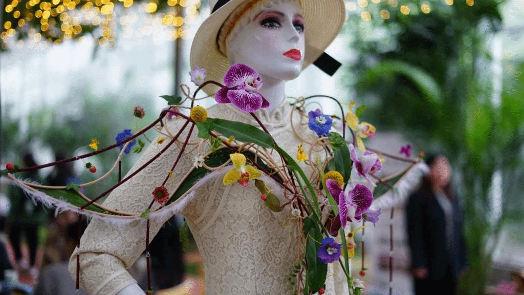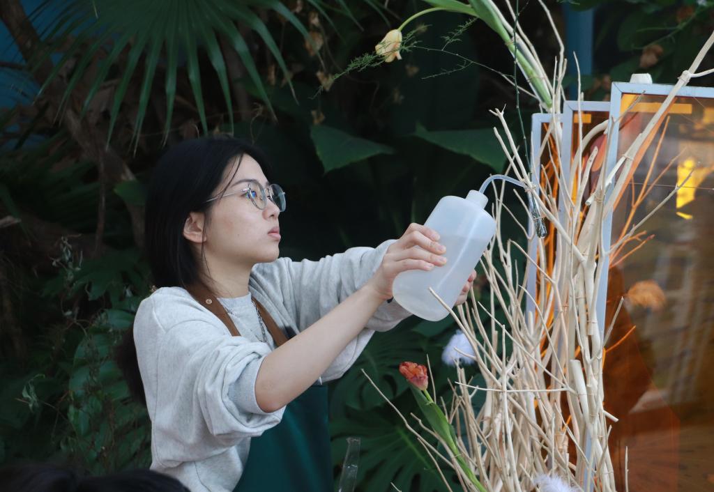 本次花艺展由肖晓梅大师工作室负责布展,其作品有中国传统插花、现代花艺、西式花艺作品、阴生植物组合盆栽及多肉植物组合盆栽等,还有利用破旧的陶罐改造的花境作品。