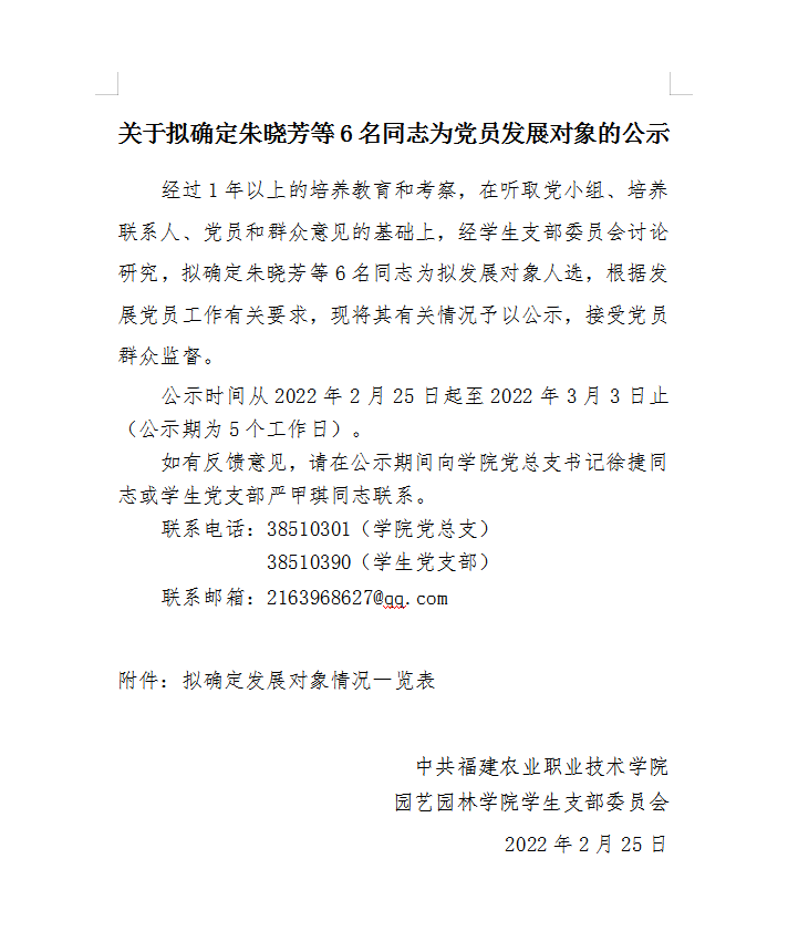 关于拟确定朱晓芳等6名同志为党员发展对象的公示