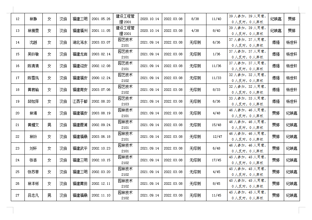 关于拟确定陈玲芳等59名同志为入党积极分子的公示结果说明
