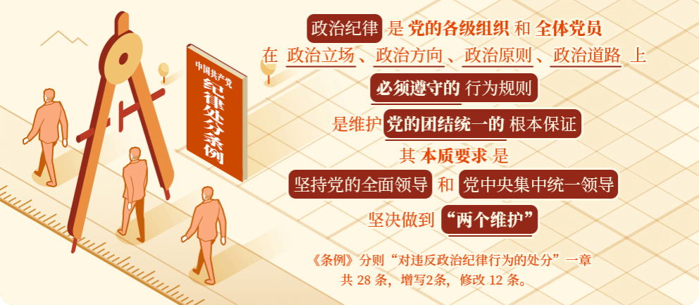 《中国共产党纪律处分条例》第二编分则第六章是对违反政治纪律的行为的处分规定。新修订的纪律处分条例第六章共 28 条,增写2条,修改 12 条。