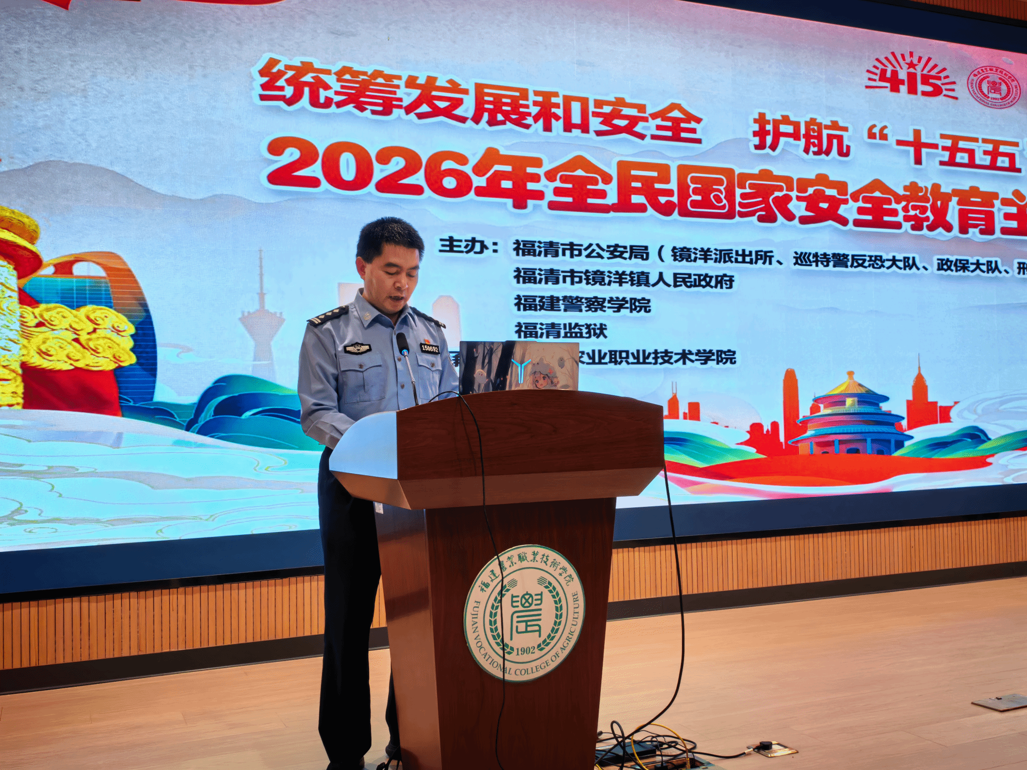 活动专项启动仪式上,学院党委副书记王振亮为活动致开场辞,立足高校立德树人根本使命,阐明校园国家安全常态化宣教的育人价值与现实意义。福清市公安局镜洋派出所所长徐俊金作专项安全动员讲话,深度结合当下社会治安与校园安防工作新形势、新特点,重点强调新时代全民国家安全工作的政治意义、社会意义与校园守护意义,现场号召全体在校师生牢固树立总体国家安全意识,主动常态化研学国家安全相关法律法规与防护知识,积极主动投身校园安全联防共治、基层平安共建各类实践行动,同心聚力携手守护平安校园、共建和谐平安属地家园。