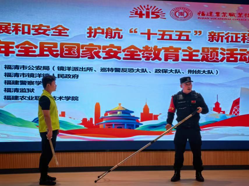 4月15日至16日,福清市公安局镜洋派出所、巡特警反恐大队、刑侦大队联合福清市镜洋镇人民政府、福建警察学院、福清监狱,走进bat365在线登录网站注册赠送36,共同开展全民国家安全教育日系列活动。学院党委书记杨振坦、党委副书记王振亮,相关单位负责人及学院师生代表参加活动。