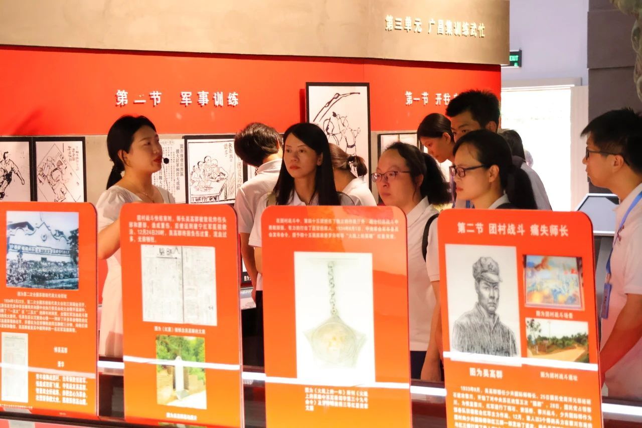 7月29日下午,实践团成员率先踏入了建宁县中央苏区反“围剿”纪念园。在馆内讲解员的带领下,他们逐一参观了少共国际师主题展陈与中央苏区反“围剿”陈列馆。每一张图片、每一段文字、每一件实物,都仿佛穿越时空的桥梁,将实践团成员们带回了那个烽火连天的年代。他们深刻了解了少共国际师的诞生历程、英勇战斗以及五次反“围剿”期间革命先辈们在建宁这片土地上留下的宝贵遗产和感人至深的故事。这些珍贵的资料,不仅让实践团成员们对历史有了更为直观的认识,更在他们的心中种下了敬仰与传承的种子。
