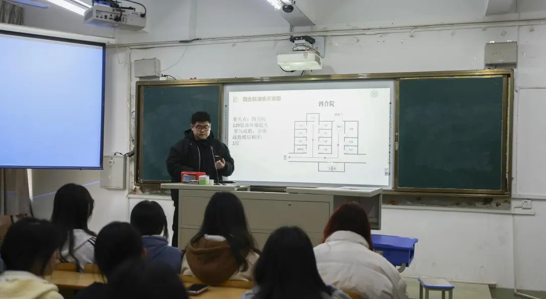 随后,陈瑾老师也详细讲解火灾预防、应急逃生等关键知识,并对疏散演练的流程、要求进行了细致说明,确保每位学生清楚了解撤离方向、路线及安全区域,为演练的顺利开展奠定了坚实基础。