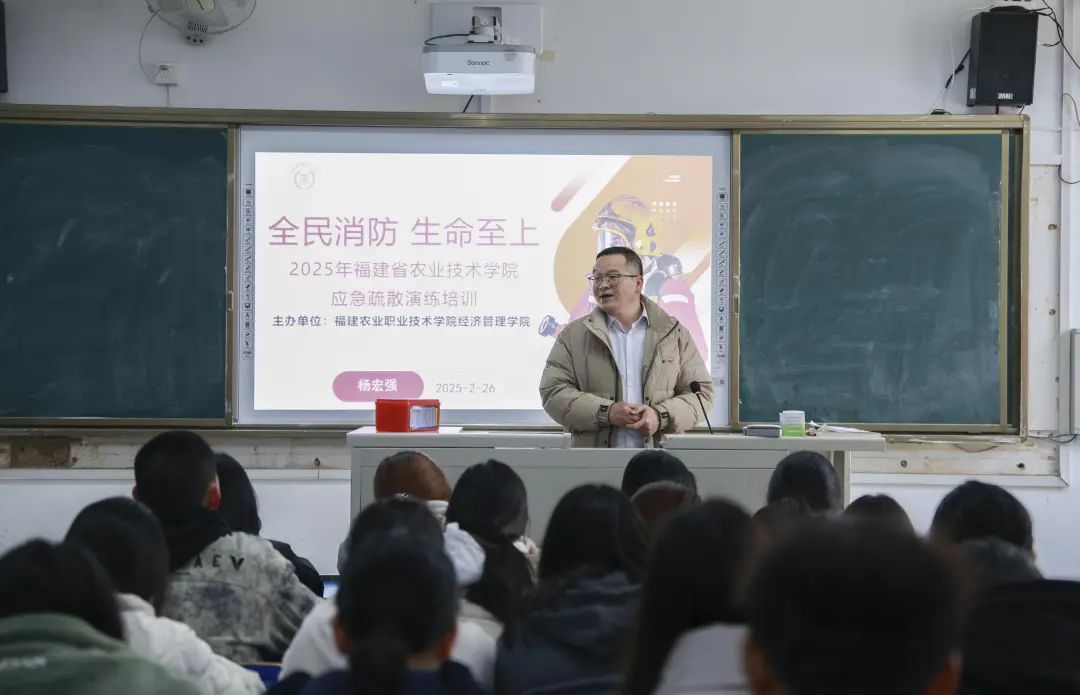 活动伊始,杨宏强老师为同学们带来了专业的警示教育培训。结合实际案例,同时也普及火灾预防、逃生自救等消防知识,让大家对演练的重要性和流程有了初步了解。为同学们讲解了火灾的成因、危害以及预防方法,发生火灾时如何自救,并分享了生活中常见的火灾隐患和应对策略,让大家深刻认识到消防安全的重要性。