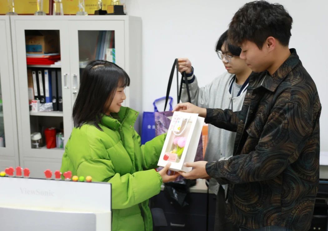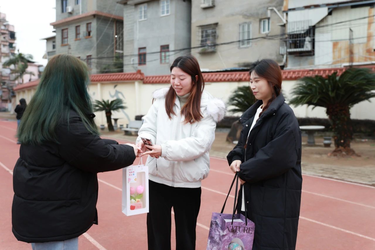 我们满怀期待地把精美的礼品送到了老师们手上,每束花,每句祝福,都饱含着同学们对老师真挚的感恩与祝福。简单一句“女神节快乐”留下了最真挚的祝福。